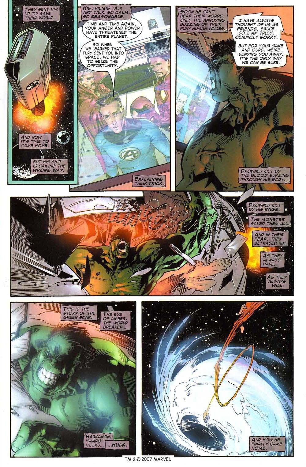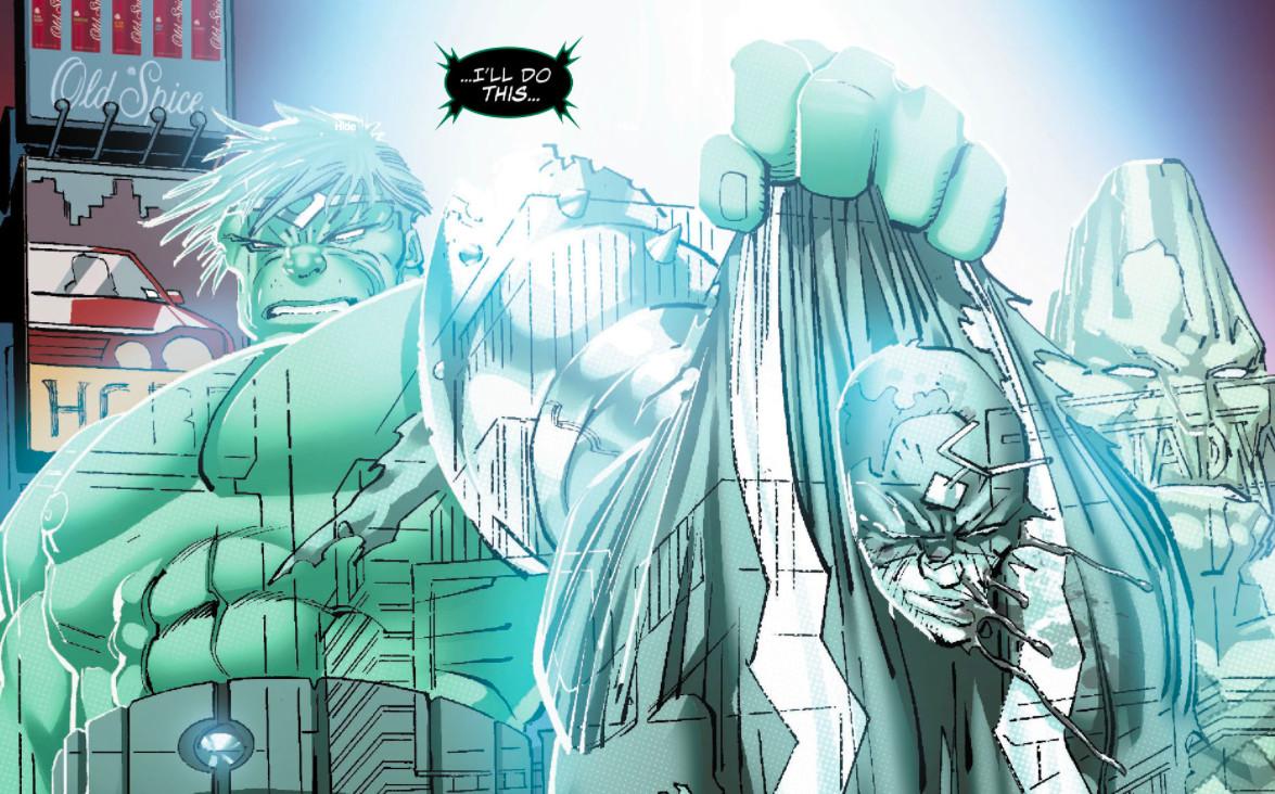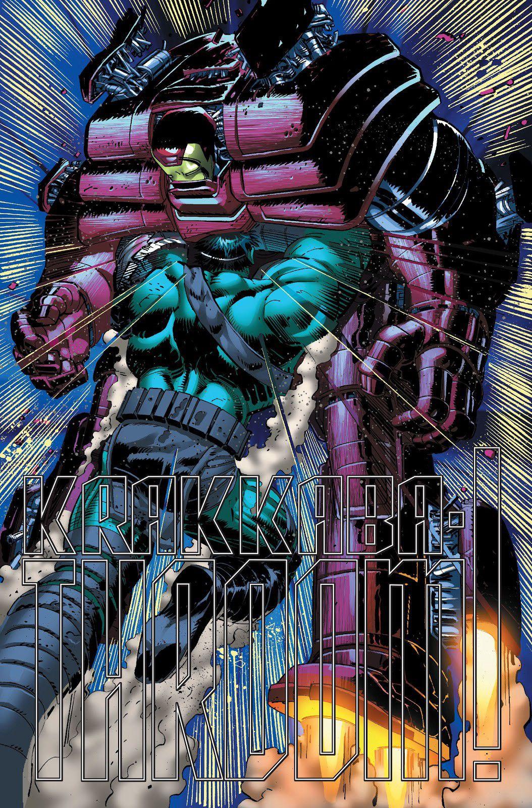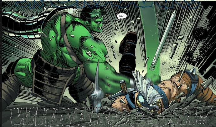 In World War Hulk, Hulk, bent on revenge, his gladiator companions in tow, returns to Earth and proceeds to murk everyone who wronged him — everyone, one after another, in a series of jaw-dropping splash pages. The can-o’-whoop-ass recipients include: