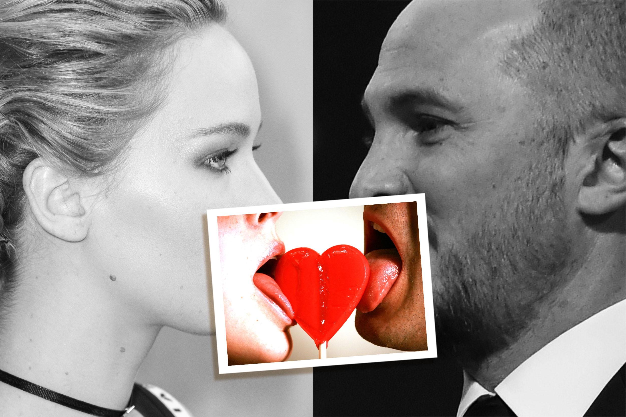 Wait: Are we sure that Jennifer Lawrence and Darren Aronofsky are actually sharing a lollipop? Or is this just an internet optical illusion?