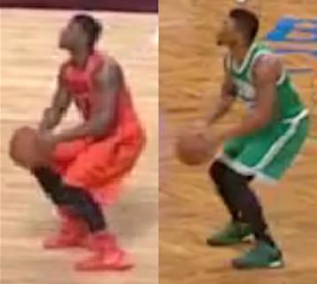 Through seven games this season, Smart has knocked down 35 percent of his 3s on 5.7 attempts per game. He told D’Amico that he’d worked on not dropping the ball below his hips and not dipping so low, so that he can get his shot off quicker. The mechanical revision is subtle, but even a millisecond can be the difference between an open or contested shot with fast, long, athletic defenders hungry to block shots. This change was necessary for Smart to become an efficient shooter, but it’s not all he did. It’s clear watching Smart that by altering his dip, he’s also shooting more from an upright stance. Notice in the images below, from Oklahoma State and his rookie year with the Celtics, how he coiled his body like a spring as he prepared his shot.