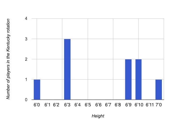 A common thread through both 2014 and 2016 is the dearth of wings between 6-foot-4 and 6-foot-8 on the Kentucky roster. Both teams are made up primarily of guards and big men, but not many players who can connect the two groups of players in lineups that make sense. Take a look at the listed heights of the nine players in Kentucky’s rotation this season: