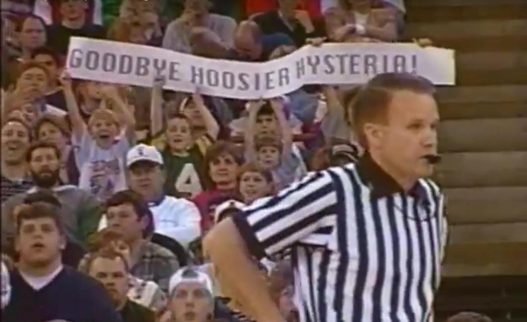 Is Hoosier Hysteria dying? It can’t die. Hoosier Hysteria is a religion, and I mean that in the literal sense. It’s a belief in an idea that’s so strong it permeates every aspect of its followers’ existence. It’s a way of life and a reverence of something bigger than self, with places of worship that hold entire town populations, and gods who wear jerseys and red sweaters and comb-overs.