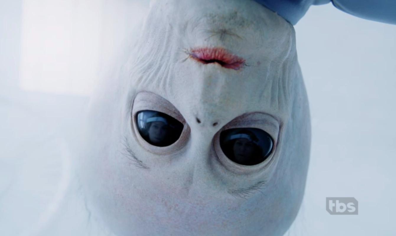 Somewhere between those two poles, aesthetically and intellectually, is People of Earth, starring embattled Daily Show vet Wyatt Cenac as a big-shot journalist who, after a series of unsettling conversations with a talking deer, joins an alien-abduction support group in upstate New York. It’s a goofball-ensemble deal, mysterious and eccentric; my favorite bit player is the farmer, who stress-eats large pretzels and describes his vocation as “pretty run-of-the-mill, I guess. Grow some stuff. Kill some stuff.” (H. Jon Benjamin shows up, actually, as an intergalactically dirty small-town cop.) There are, indeed, three types of onscreen aliens: suave reptilian infiltrators, a classic-sci-fi big-headed misanthrope with weird lips, and a Lord of the Rings–style elfin albino sex god. When the aliens get to bickering, you sense that the show’s executive producers, including Conan O’Brien and Office alum Greg Daniels, are aiming for Woody Allen sophistication and will settle for Zucker, Abrahams, and Zucker farce. And so will you.