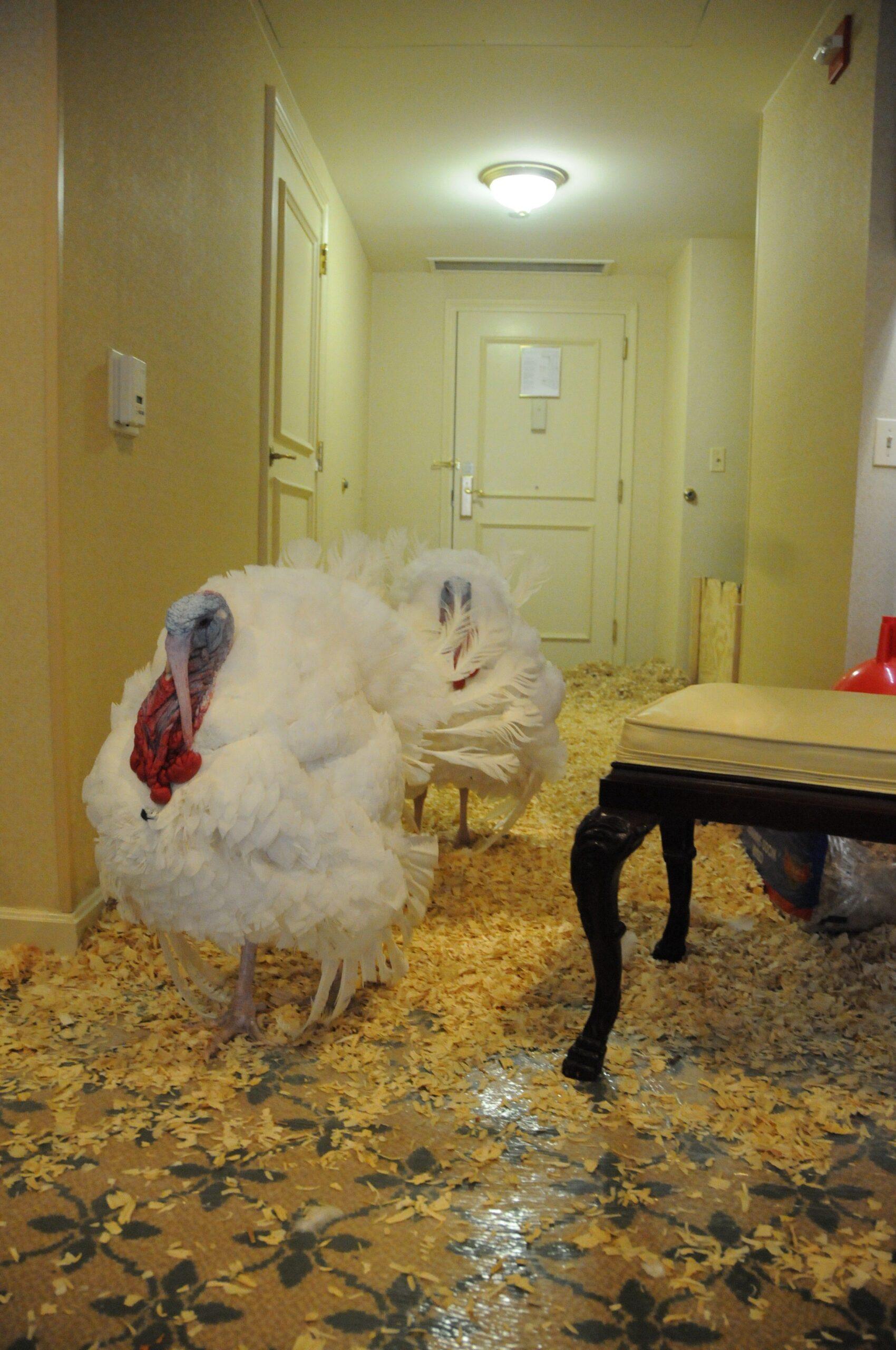 On Tuesday, the turkeys strutted around their room at the Willard InterContinental Washington hotel, in a suite that on a normal Thanksgiving-season night might have gone for north of $500. In preparation for the guests, the floor had been partially covered with a tarp and wood shavings, but otherwise left unchanged. If this sounds absurd, I can only stress that it is dramatically more so. The Willard is the sort of stodgy, marble-bedecked D.C. institution where you check your pocket on the way out to see if someone slipped a cigar inside it, like a magician might a trick coin. The hotel’s all-American bona fides are well-established: The lyrics to “The Battle Hymn of the Republic” were written there, as was Martin Luther King Jr.’s “I Have a Dream” speech. “Throughout the ages,” the hotel’s website gushes, “no phrase has raised eyebrows like ‘I’m staying at the Willard.’”