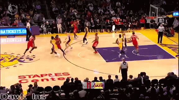 Distribution is the name of the game for Walton, and more than just a mantra. It’s hardwired into the team’s structure. The Lakers currently roll 10 deep, and no one player averages much more than 17 points per game. Minutes are distributed very evenly, with every player averaging under 30 minutes per game. Lou Williams, the team’s leading scorer, comes off the bench. Structure hasn’t hampered the team’s creative instincts, it’s nurtured them. Here is Larry Nance Jr. (Larry Nance Jr.!) with one of my favorite assists of the year so far:
