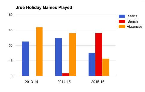 His injury situation was bad enough that the 76ers were fined $3 million by the NBA for not fully disclosing all of the information about his leg injury when the trade was made. In an effort to limit his minutes last season, Alvin Gentry moved him to the bench, further diminishing his role. As a result, Holiday has missed almost as much time as he has played in New Orleans.