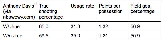 For as great as Davis has been this season, he plays at a higher level with Holiday. There’s absolutely no way to stop Davis when he’s in a pick-and-roll with a high-level point guard, and reducing the shot-creating burden when he’s on the floor makes it much more difficult for defenses to load up on him.
