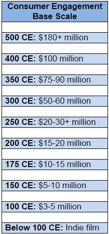 Lynn says that Piedmont’s CE scores have a 0.73 correlation to opening-weekend dollars (where 1.0 would indicate a perfect, positive relationship between the two), and only a slightly lower correlation to total box office earnings. One weakness of this stat is that it doesn’t tell us what the typical studio exec would get just by going with his or her gut; what we’d really like to know is what value the model provides over a replacement-level Hollywood lifer. Still, Lynn points out that based on data on every major release dating to 1995, CE correlates more closely to opening-weekend box office than production budget (0.58), screen count (0.57, which itself has a close correlation to budget), "quality" as measured by review aggregators (0.35), whether the movie is a sequel (0.22), and whether it’s rated R (minus-0.21; the more exclusive the rating, the worse the box office forecast). The model’s "r-squared," or coefficient of determination, says that its inputs explain more than 86 percent of the observed variation in box office results.