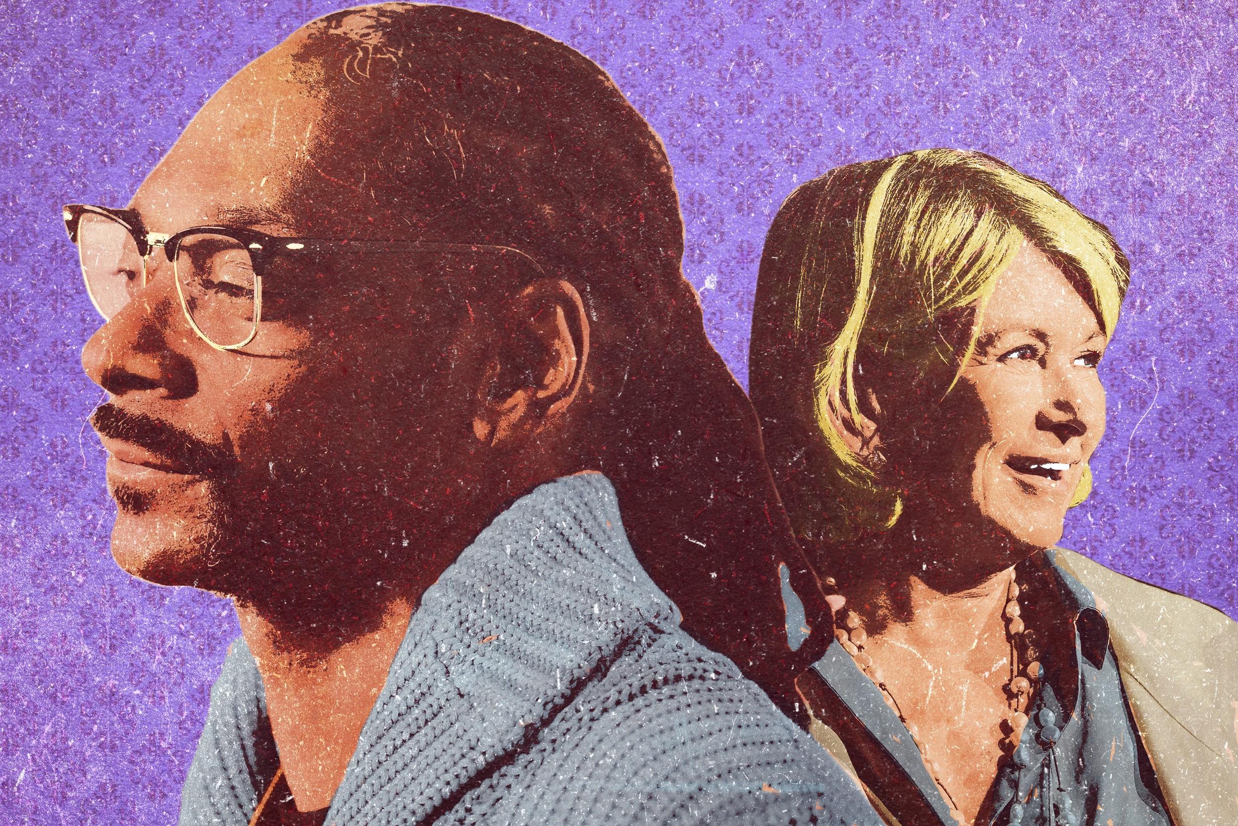 Stewart has a famous bit of criminal history herself. Having been convicted of federal conspiracy and obstruction charges in a high-profile 2004 insider trading case, she spent five months at the Federal Prison Camp, in Alderson, West Virginia. In the decade following her release in March 2005, Stewart has become — if not quite an eccentric — a cool mom whose perfectionism belies some understated mischief, and an unflappable embrace of the modern. On the set of Martha & Snoop’s Potluck Dinner Party, her half of the kitchen is conventionally decorated with white tiles and copper cookware, whereas Snoop’s station is a Cadillac grill with pink and purple headlights. There are plenty of popular rappers who might embody that sort of incongruity on a stereotypical level, but Snoop is especially capable of disarming those pimp and gangster tropes, and making them seem almost wholesome.