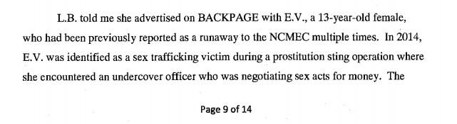 Shehan has stressed that NCMEC is focused solely on Backpage as a facilitator of child abuse, and that it is unconcerned with sex workers who are consenting adults. And children are included in the arrest warrant. "Backpage acknowledges that pimps routinely pay Backpage for ads trafficking children for sex," it reads. The warrant cites testimony from young women, including minors, who had been pimped out and raped.