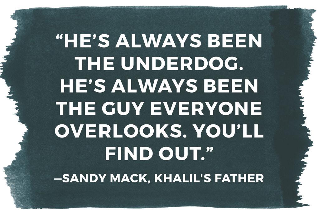 In spring 2014, the owner of the Fort Pierce, Florida, car wash that Sandy Mack frequents started talking to him about the upcoming NFL draft. Sandy, Khalil’s father, always pushed his son to be perfect, saying "I’m not going to go to a game to see you sit on the bench." He always warned him about the people working to take Khalil’s spot: "There’s someone out there practicing so if you are sleeping or relaxing, someone is coming to take your place, don’t let that happen."