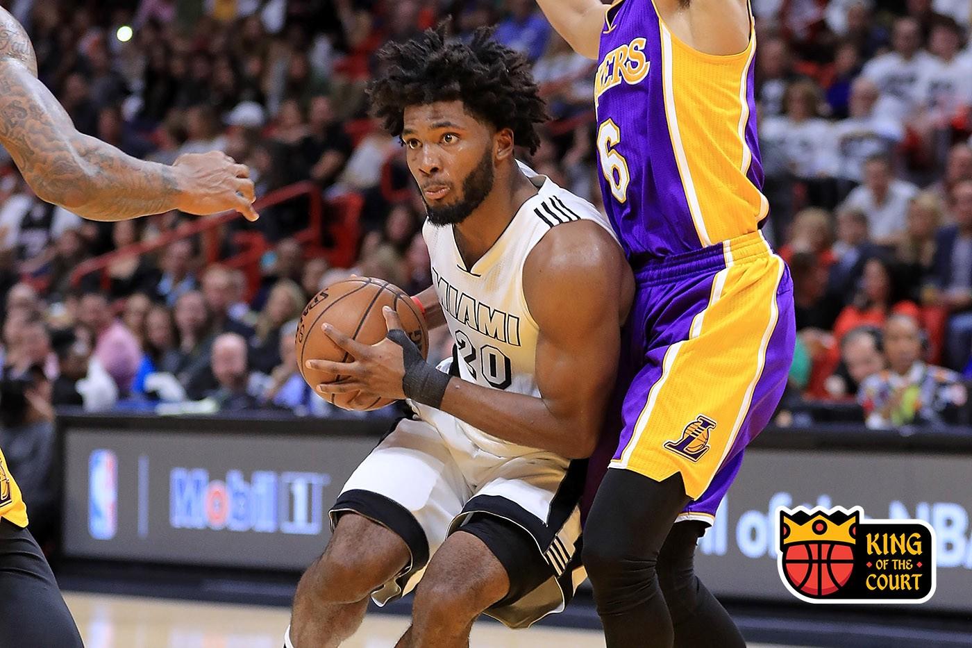 Against a team like the Lakers, the Heat were able to take full advantage of Winslow’s physical gifts by playing him at power forward alongside Hassan Whiteside, which is how they closed the final six minutes of the game in a lineup that included floor spacers Goran Dragic, Tyler Johnson, and Josh Richardson. That was the five-man unit that sealed the Heat’s comeback win. “[Winslow] was just dominating down there at that four spot,” Whiteside said after the game. “He was down there rebounding, getting to the basket, letting the game to come him, throwing lobs. He played great. When he brings that, it really helps us a lot. He’s really dynamic. I feel like this is probably the first game since his injury he was comfortable out there.”