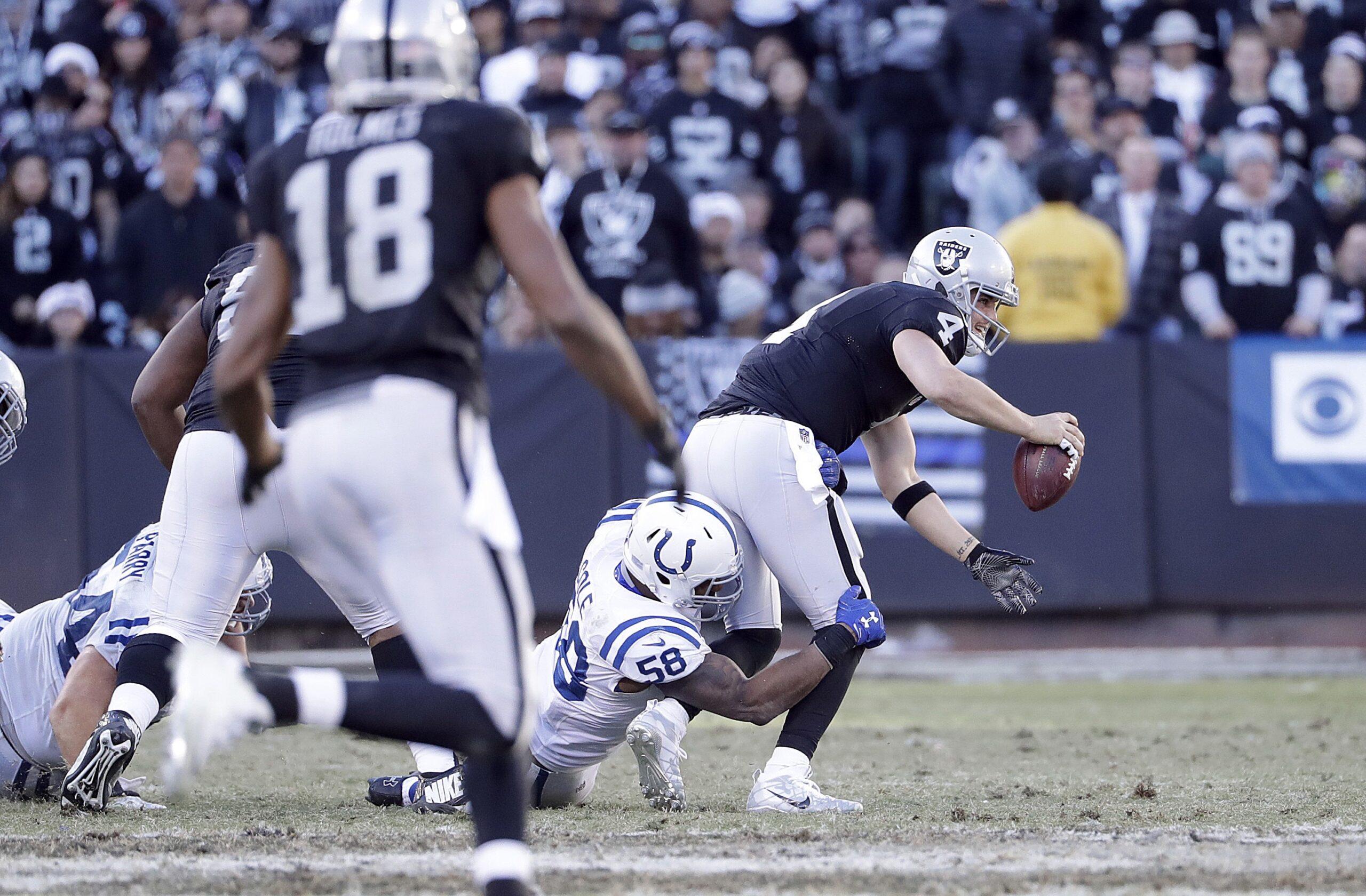 Everything was going perfectly for the Raiders. They were up three scores on the Colts in the fourth quarter in Week 16, well on their way to earning their 12th win of the year and inching ever closer to sealing a first-round playoff bye. With a young, exciting core led by stud receiver Amari Cooper, monstrous pass rusher Khalil Mack, and, most importantly, strong-armed third-year quarterback Derek Carr, the Raiders had finally stormed back from the NFL’s hinterland and were ready to seriously contend in the postseason — perhaps even for a Super Bowl.