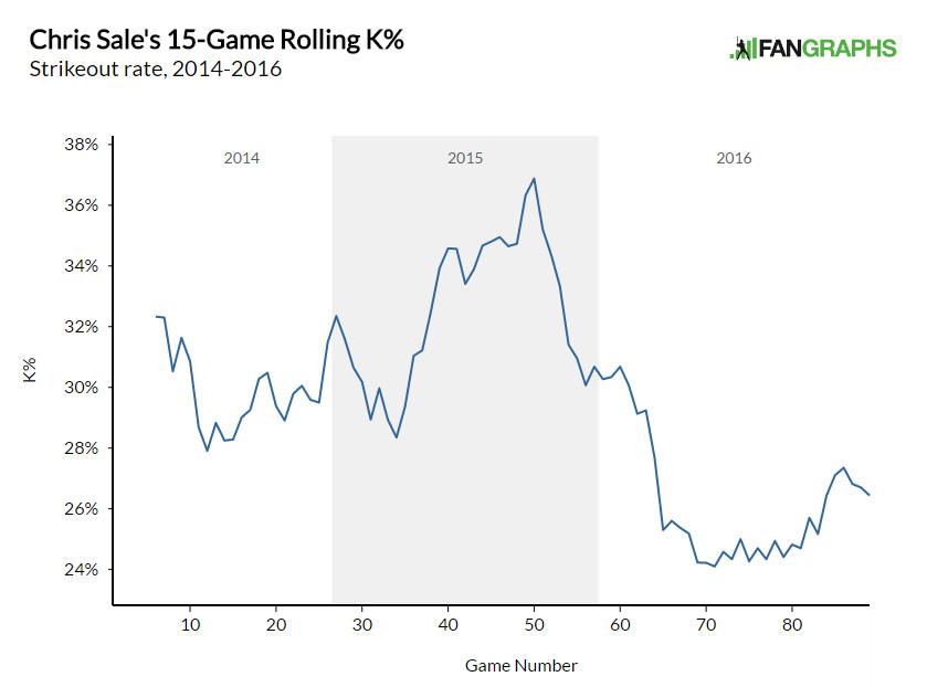 Last season was Sale’s worst ever, by FIP, largely because he recorded his lowest-ever strikeout rate compared to the league. He also lost 2 miles per hour in average fastball velocity. Whether you consider those causes for concern comes down to whether you believe that Sale lost those strikeouts and whiffs on purpose. Last March, Sale and White Sox pitching coach Don Cooper planned on implementing a pitch-to-contact approach to last longer in games; sure enough, Sale threw more fastballs, at slower speeds, and aimed for the zone more often. Although his strikeout rate rose in the second half of the season, it never approached its 2015 level.