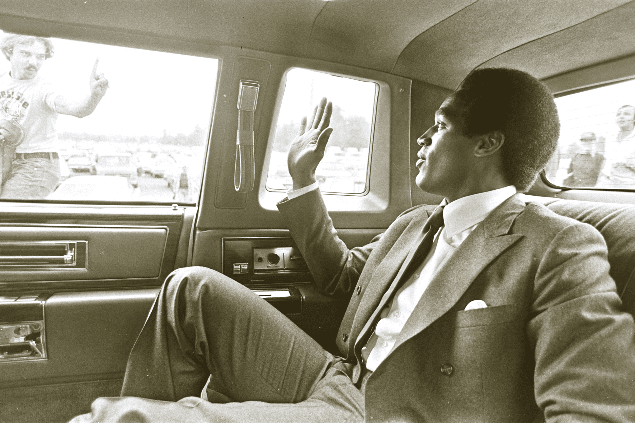 You could say that from early in his life, O.J. was a man who tried to make himself in our country’s image—the good version of that image, the divine myth, scrappy and aspirational and triumphant. By college, his talent was already mythic, a reputation manufactured in part by his peers, his coaches, a rabid and growing fleet of adoring strangers, and O.J. himself. These friends and others still speak of pretrial, heroic O.J. giddily—even as they’re also slipping in stories about his stealing their girlfriends. They call it the “O.J. effect”: Even his indiscretions were fun.