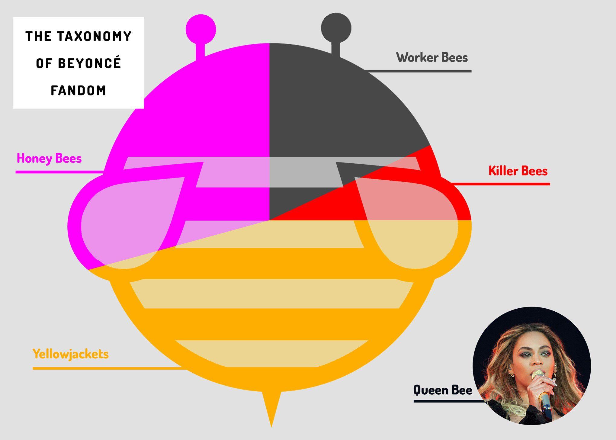 Ask a BeyHive member how they function and they’ll usually refer you to a 2010 Tumblr post written by Lauren Agnew titled “Know Your Bees.” Frustrated by the tendency for the media to clump together Beyoncé fans as one hater-silencing swarm, Agnew wrote a bee-themed guide to the hive’s personality types, which Beyoncé republished for her website’s debut. “Digger bees” (referred to elsewhere as “worker bees”) are the group’s amateur journalists, scouring the internet for new information on Beyoncé and — in the case of some forum moderators — communicating with sources they’ve cultivated over the years. (Naylor says she falls into this category, and was once able to triangulate the exact location of the “If I Were a Boy” video shoot happening in Harlem based on a tip in the forum. She drove there after work, waited for a few hours, and eventually got a photo of Beyoncé exiting the building.) Honeybees, Beyoncé’s most peaceful fans, typically focus on praising the artist rather than seeking out her critics (a.k.a. “wasps”). Yellowjackets are seasonal Beyoncé fans, and members look down upon them for their lack of loyalty. And killer bees attack. (Beyoncé’s site tellingly left out that description).