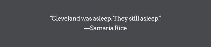 While Tamir’s death resonated nationally on a level few other deaths have, his case never gained the same local momentum as Brown’s in Ferguson or Garner’s in New York. "Cleveland," Samaria says, "was asleep. They still asleep."