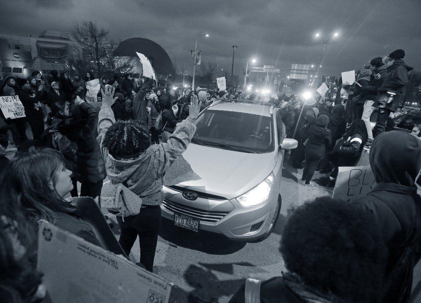 "You would go to the protests," says Cleveland Scene reporter Sam Allard, "and you’d usually see a few dozen people marching. That was really it." In part, this may have been simple fatigue. By the time of Tamir’s killing, Cleveland residents had spent years protesting another killing by police. In 2012, an officer tried to pull over Timothy Russell, a Cleveland man who failed to signal for a turn while driving a 1979 Chevy Malibu in an area known for drugs. When Russell sped away, alongside passenger Malissa Williams, officers pursued them for 22 miles. Officers heard a loud noise — which investigators later said was likely the Malibu backfiring — and when the chase ended in a middle school parking lot, they fired 137 shots into the car. One officer, Michael Brelo, fired more than 40 shots himself, including at least 15 after jumping onto the hood of the car. Both Russell and Williams were killed. Both were unarmed.