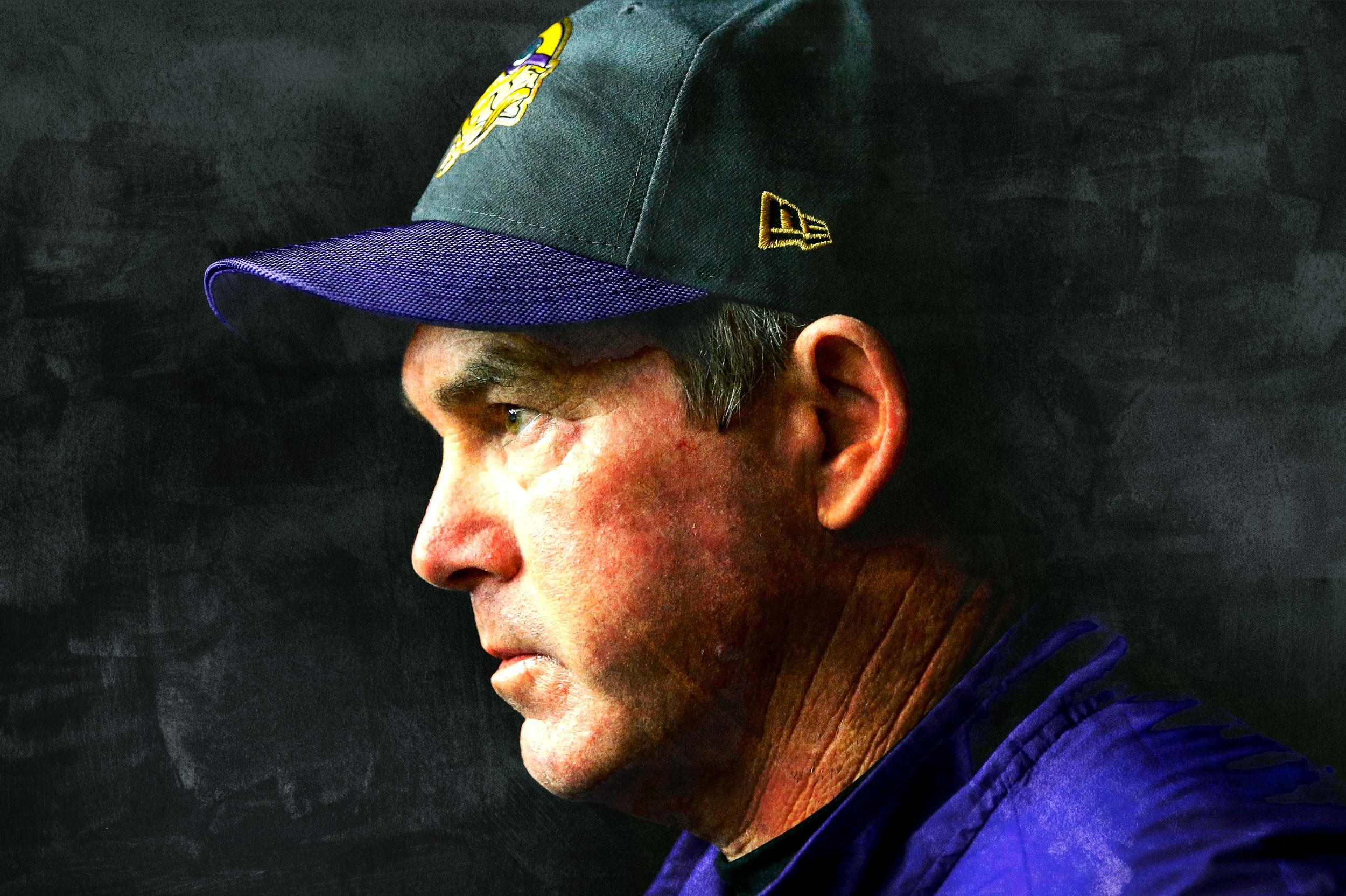It is the afternoon of August 21, and about 10 minutes after cutting practice short and storming off the field at the Vikings’ training facility in Eden Prairie, Minnesota, Mike Zimmer is talking about having fun. The third-year head coach is sitting cross-legged behind the desk in his office; a red line traverses his forehead where the band of a hat used to be. A half dozen of them are strewn haphazardly about the cavernous room.