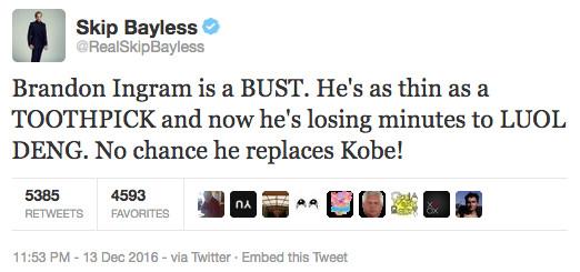 It’s December and Luol Deng is still starting over Brandon Ingram, and when he does play, the Duke product is getting tossed around like a rag doll.