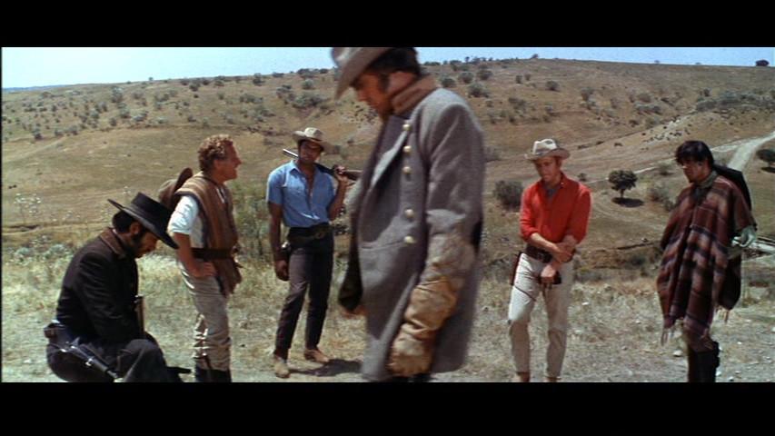 Guns of the Magnificent Seven, the third film in the series, stars George Kennedy in the Chris Adams role. It’s not a good movie, though it is far better than Return of the Seven. Guns gets the importance of the team-building in a way the second film doesn’t. Made in 1969, it is influenced by second-wave spaghetti Western filmmakers like Sergio Corbucci. Director Paul Wendkos shot the film with an eye toward graphic framing instead of flat American Western compositions. The film was released around the same time as The Wild Bunch, which would be like if Logan’s Run had been released the same time as Star Wars.