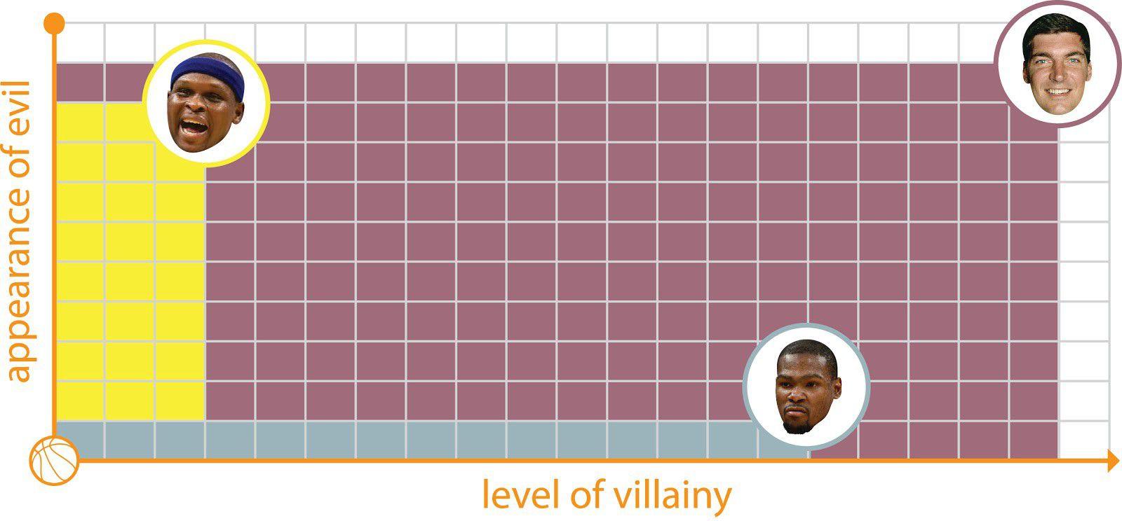 To measure the greatness of a basketball villain, plot his Level of Villainy on the X-axis. Plot his Appearance of Evil on the Y-axis. You connect those two sections, shade in the total area, and there you go. The greater the area covered, the greater the villain.