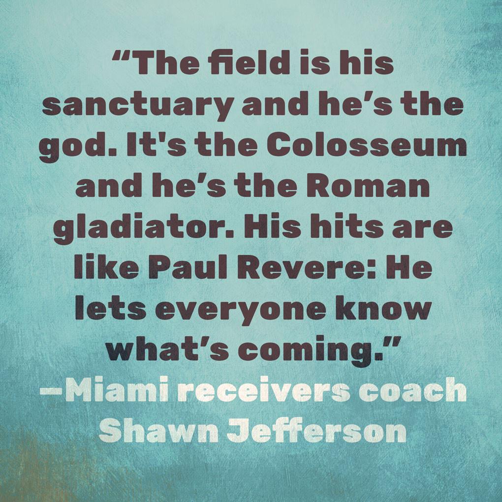 Jefferson, Miami’s receivers coach, spends a lot of his free time watching nature documentaries on National Geographic Channel. His favorite thing is watching lions roam the Serengeti, and over the past few months, he’s noticed some similarities between what he sees on his TV and what he sees on the football field every day.
