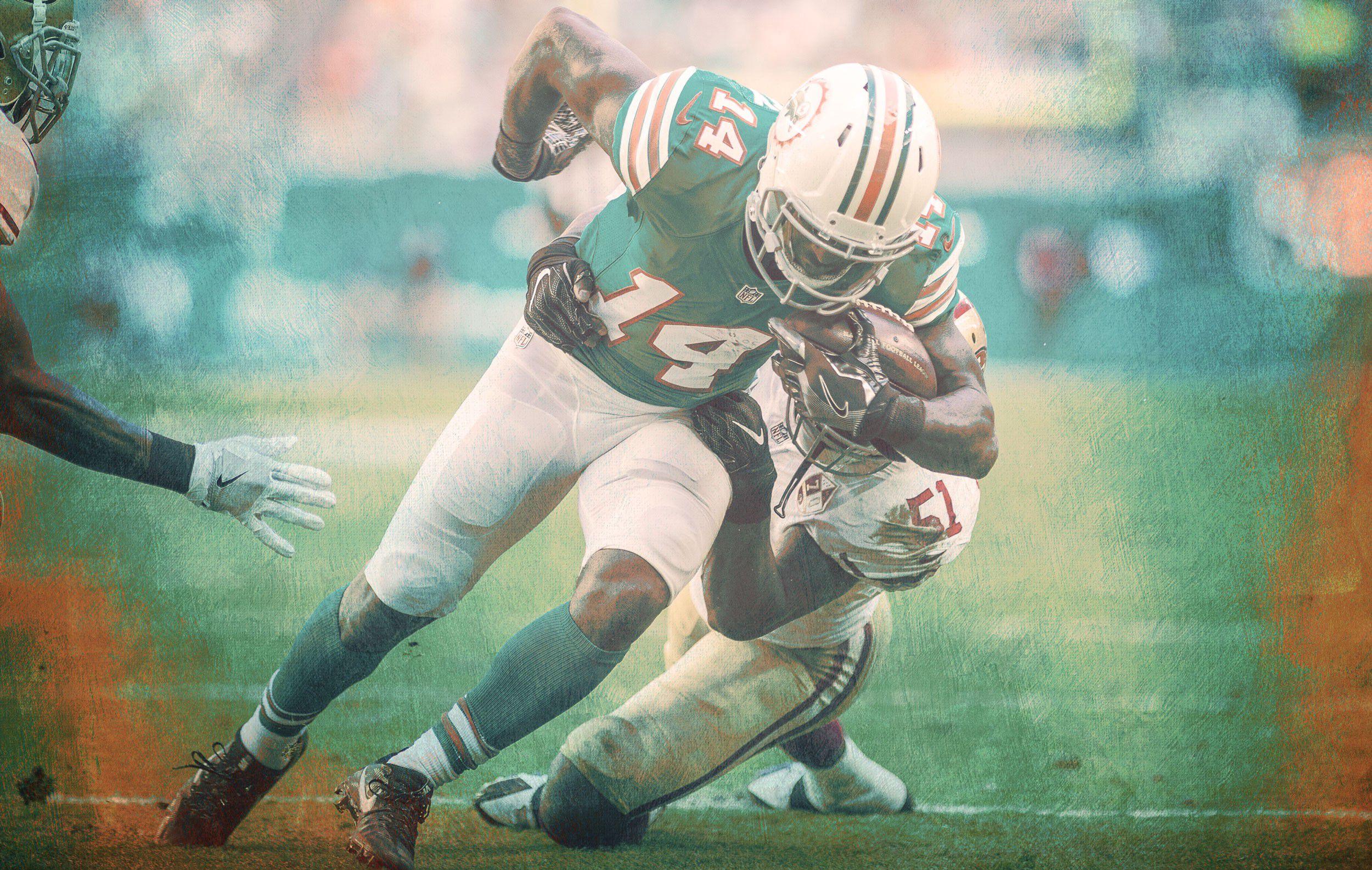 In today’s high-offense, high-completion-percentage era, quarterbacks rely more on shorter passes and using the middle of the field. Landry facilitates that approach, primarily playing out of the slot, where he routinely turns short throws into big gains. This season he averaged 6.6 yards after the catch, second most among receivers with at least 60 receptions, and amassed 1,136 receiving yards on 94 receptions even though quarterbacks Ryan Tannehill and Matt Moore threw the ball just 6.4 yards on average when targeting him. This season, 37 wide receivers topped 850 receiving yards; all of them caught passes deeper down the field than Landry on average, but only nine recorded more total yardage. Among receivers with at least 30 catches, 103 NFL players caught the ball farther down the field on average than Landry this year — they just got tackled before he did. "What he specializes in is taking short gains and making them big gains," says Miami’s receivers coach, Shawn Jefferson.