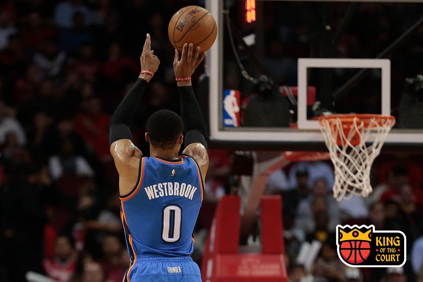 So, yeah, it’s a little hard to blame Westbrook for thinking the night just might’ve been one touched by divinity. It’s rarely ever that easy. The right side of the floor betrayed him in the final two frames; Russ missed all seven of his midrange jumpers from that area of the court, and he was 6-for-19 in the game’s last 24 minutes.