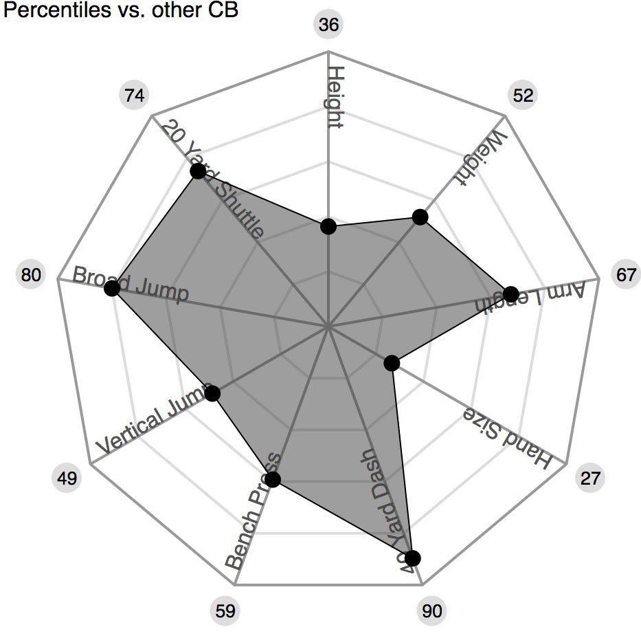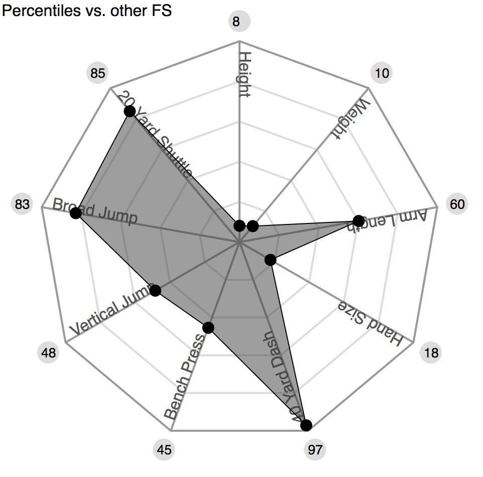 It starts with the unique athletic profile he brings to the position. Take a look at McCourty’s spider chart from the 2010 combine, brought to you by the wonderful Mockdraftable.com: