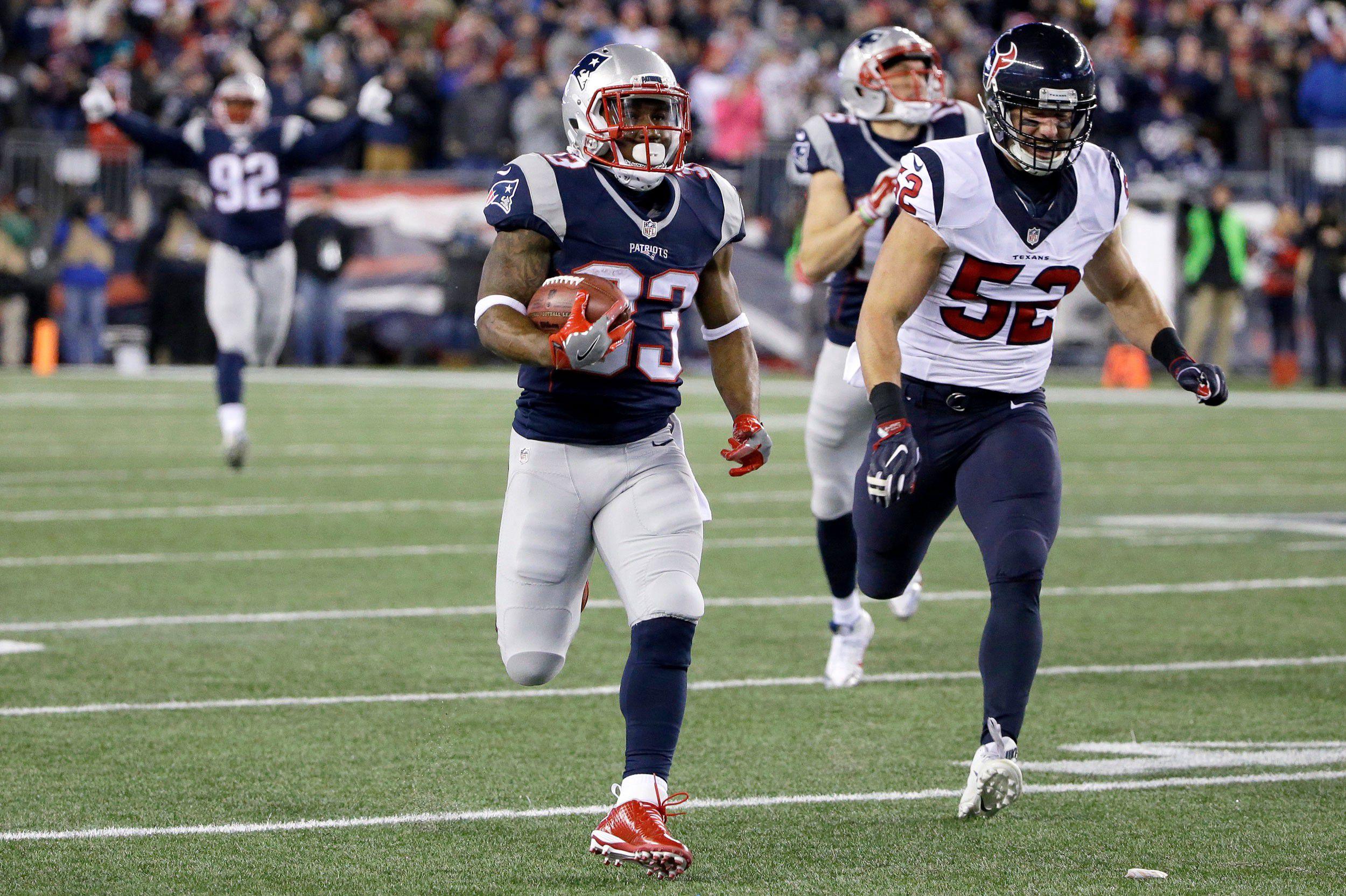 Dion Lewis is trying to be polite, but it’s time for him to leave. It’s midnight, nearly half an hour after the Patriots’ 34–16 stomping of the Texans, and a horde of reporters is lingering at his locker. It started five rows deep, and as Saturday turns to Sunday, about a dozen microphones remain pointed his way. “I gotta go,” Lewis says to no one in particular, peering into the distance, plotting his escape.