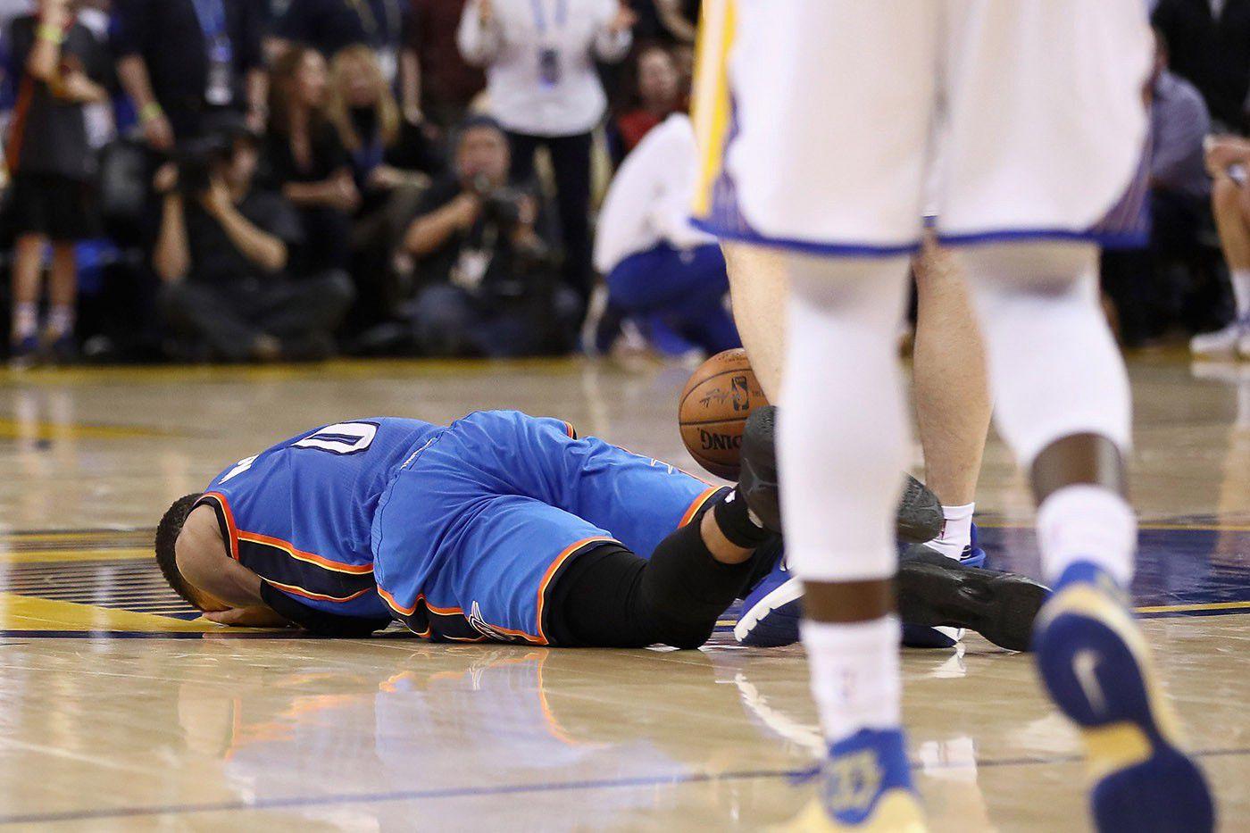 I had never before in my life missed Steven Adams (home in OKC recovering from a concussion) more than I did right there and then. I halfway hoped the arena was all of a sudden gonna fill with the sound of breaking glass and then Adams was gonna come swaggering out of the tunnel on some “Stone Cold” Steve Austin shit, but alas. Nothing. Poor Russell just laid there, beaten, battered, his honor left undefended.