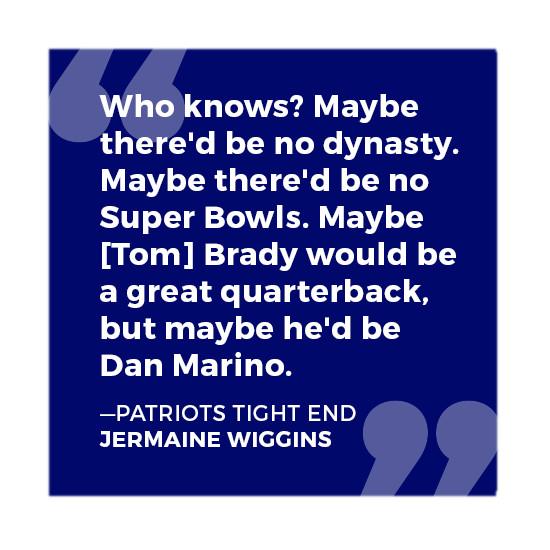 Wiggins: Who knows? Maybe there’d be no dynasty. Maybe there’d be no Super Bowls. Maybe Brady would be a great quarterback, but maybe he’d be Dan Marino.