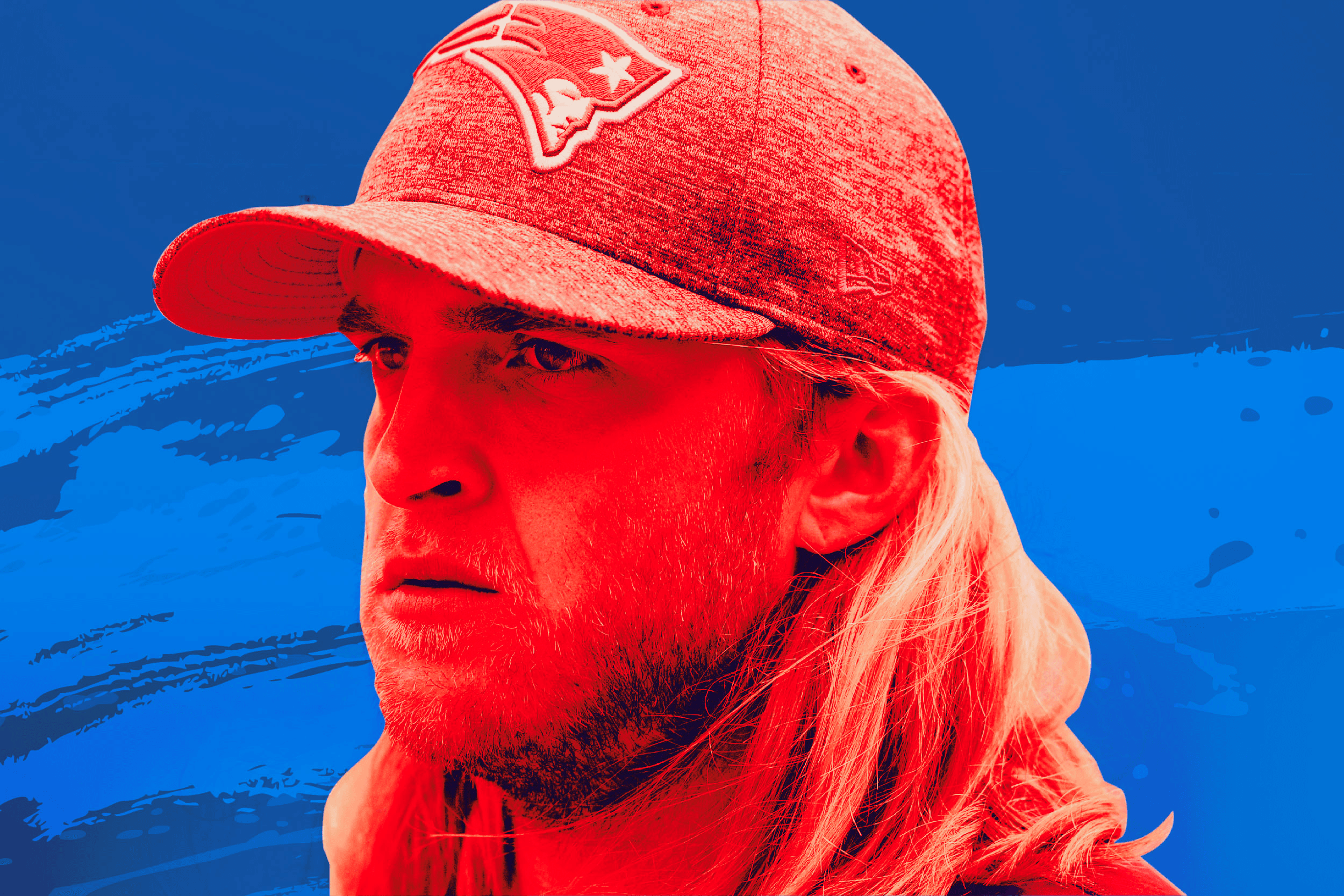 It’s Super Bowl week in Houston, and there’s a growing media horde around a Belichick. Only this one has blond hair that would fall to his shoulders if it weren’t tied behind his head. A TV reporter swoops in and asks, “What’s the hardest thing about being Bill Belichick’s son?”