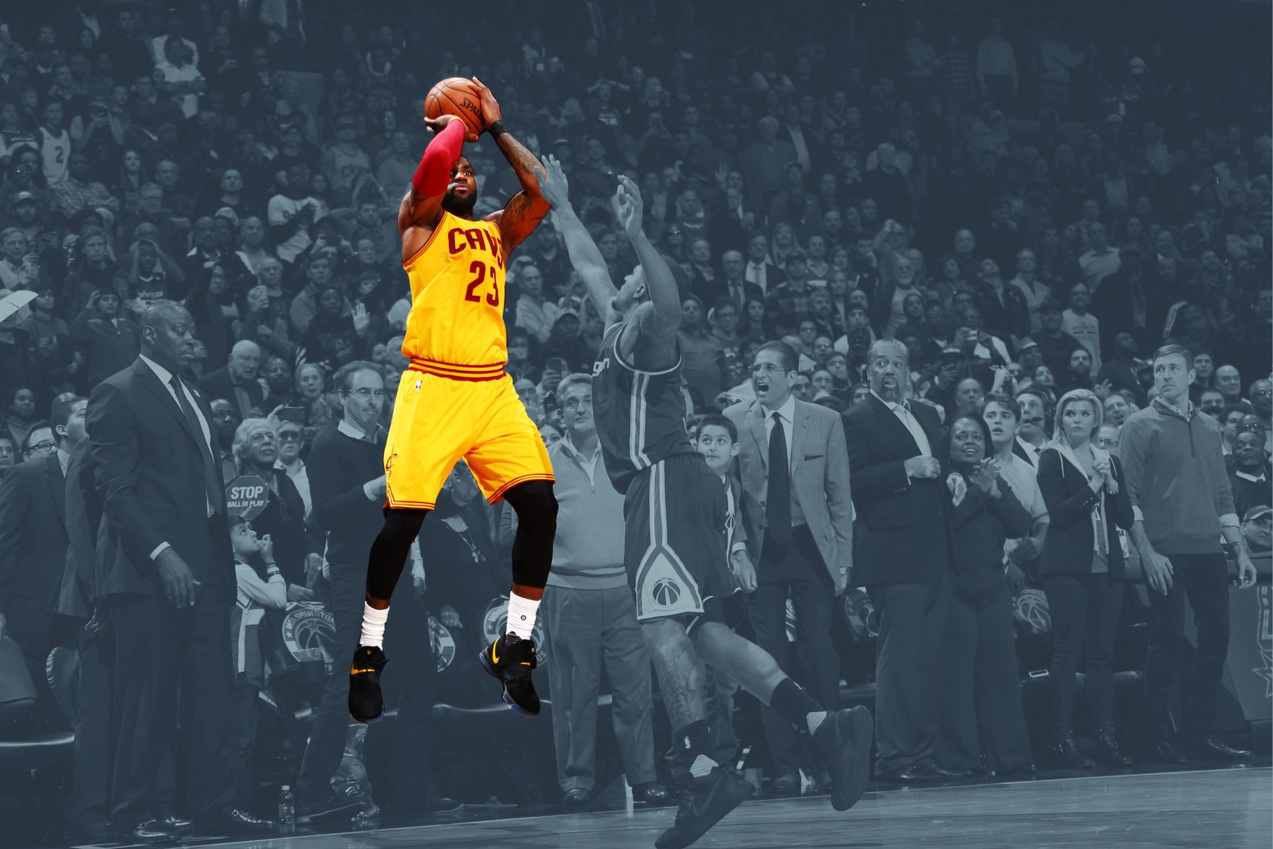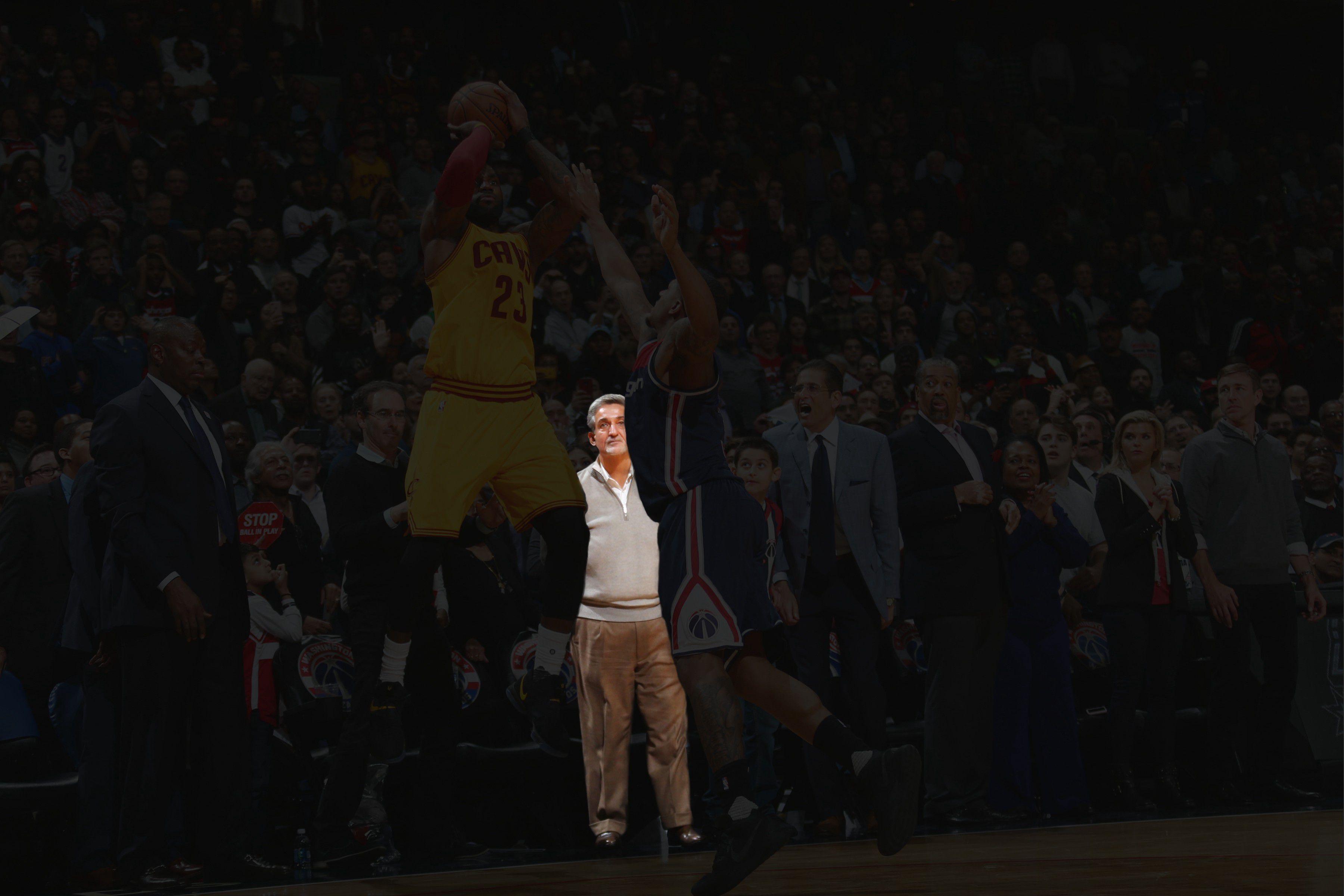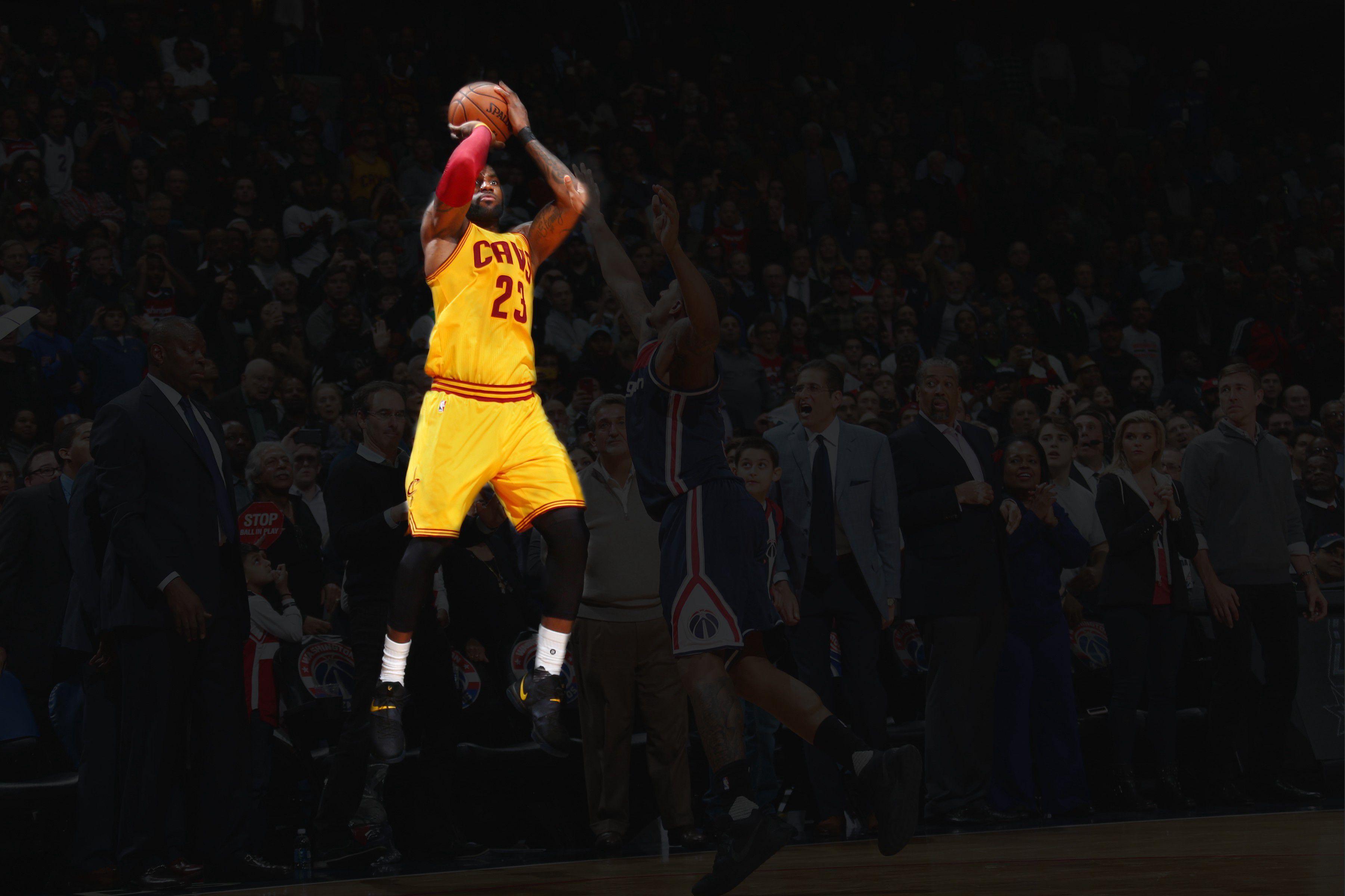 On Monday night, the Cavs and the Wizards played, and it was a very good game marked by a very excellent moment: With 3.4 seconds left, Kevin Love, the archangel of the outlet pass, grabbed the ball following a made free throw, then chest-passed it some 75 feet to LeBron James, who caught it and did an amazing thing. That amazing thing — a falling-out-of-bounds 3 that tied the game with 0.3 seconds left — made for a great highlight video. But it made for an even better photograph: