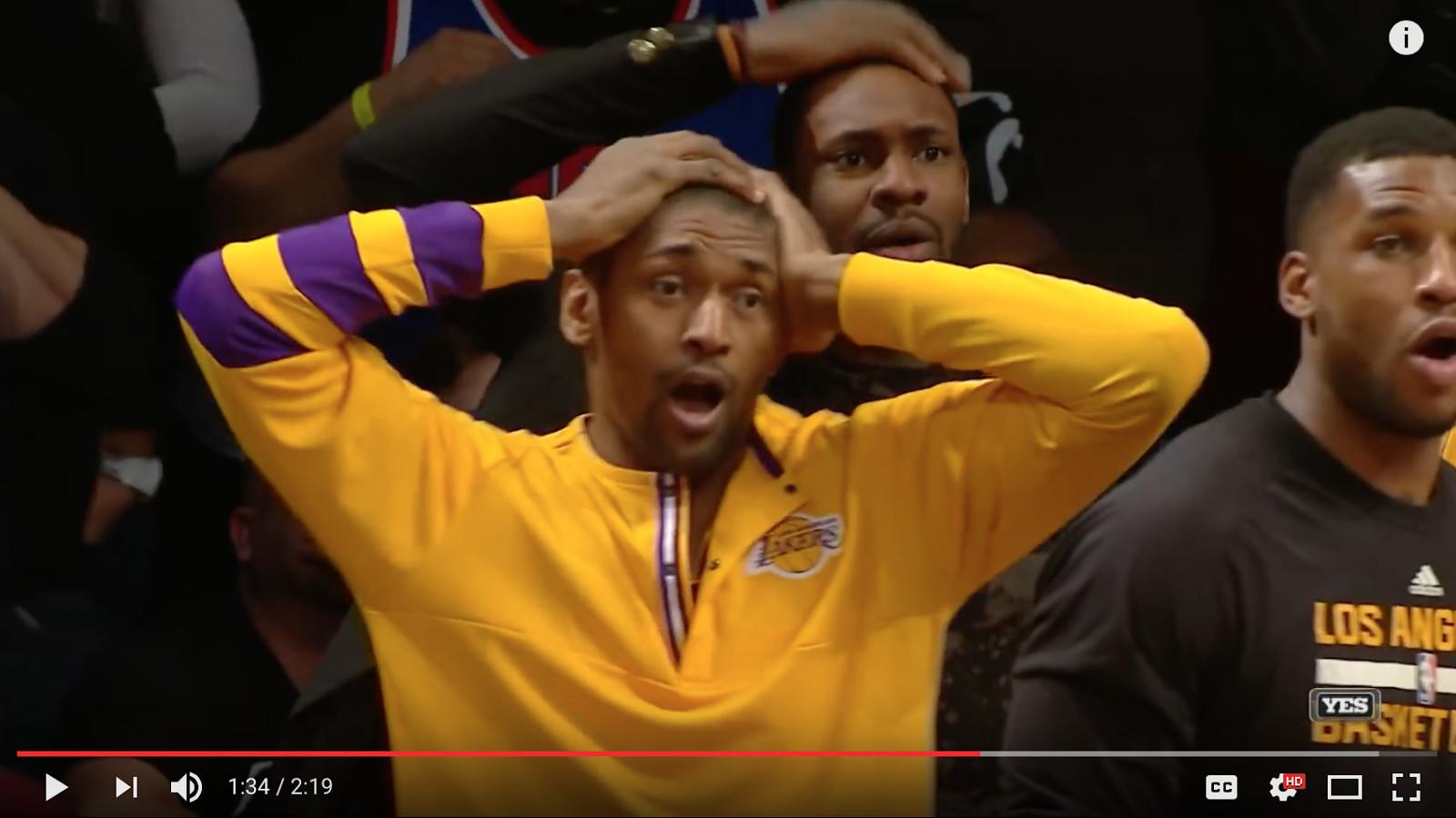 Here’s the Lakers bench, which Metta World Peace is on, because Metta World Peace is still in the NBA, because nobody will tell him that he’s actually not in the NBA anymore, because he’s Metta World Peace: