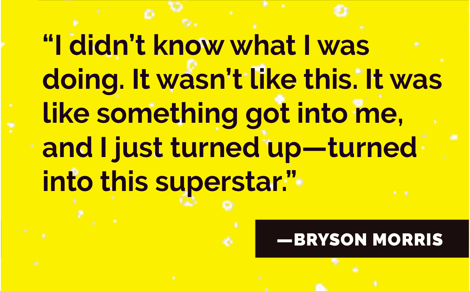 When he talks like this, though, Aviles, intentionally or not, is gesturing at the defining quality of Bryson’s career. Depending on how you look at it, Bryson Morris is either hugely successful or not successful at all. In this way, Bryson is best understood through Silicon Valley jargon. Specifically, like a promising internet startup with lots of VC funding but no revenue.