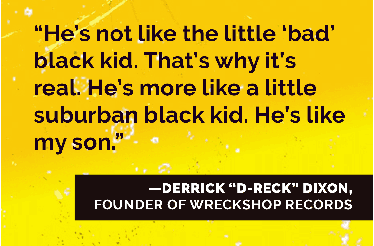 "He’s so authentic," Dollar told me. "Bryson is almost like a little black kid in a white kid’s body. It’s not a put-on." Dixon agreed. "That’s the dynamic part about him. He’s not like the little ‘bad’ black kid. That’s why it’s real. He’s more like a little suburban black kid. He’s like my son."