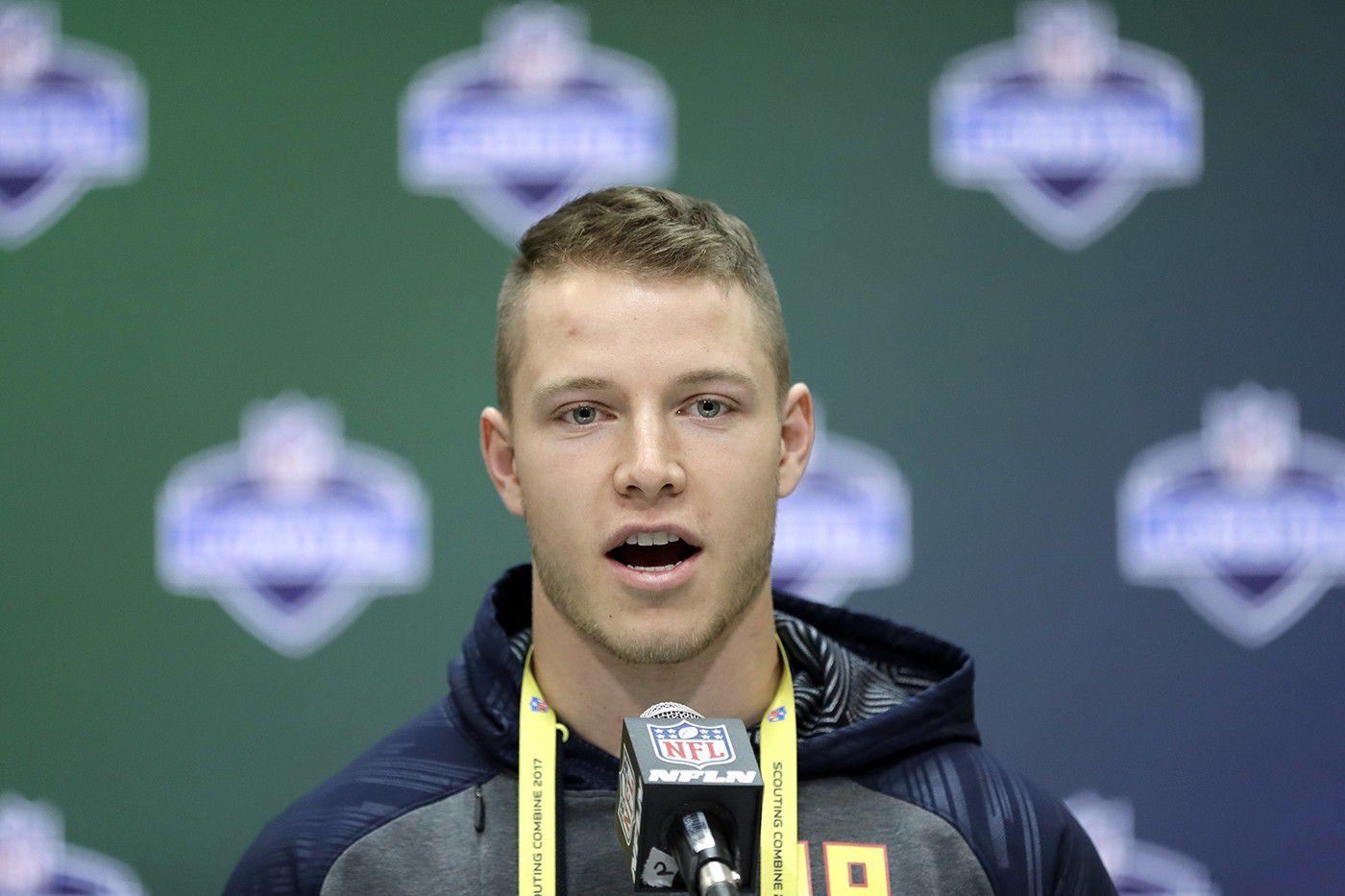 The 5-foot-11, 202-pound playmaker plans on doing all the running back positional drills this week in Indianapolis, but he’ll work out as a receiver at his pro day later this spring. McCaffrey is the son of former NFL receiver Ed McCaffrey and protégé of former pro receiver Brandon Stokley, and his ability to play in the backfield or out wide will only make him more valuable in the pass-heavy and flexible NFL.