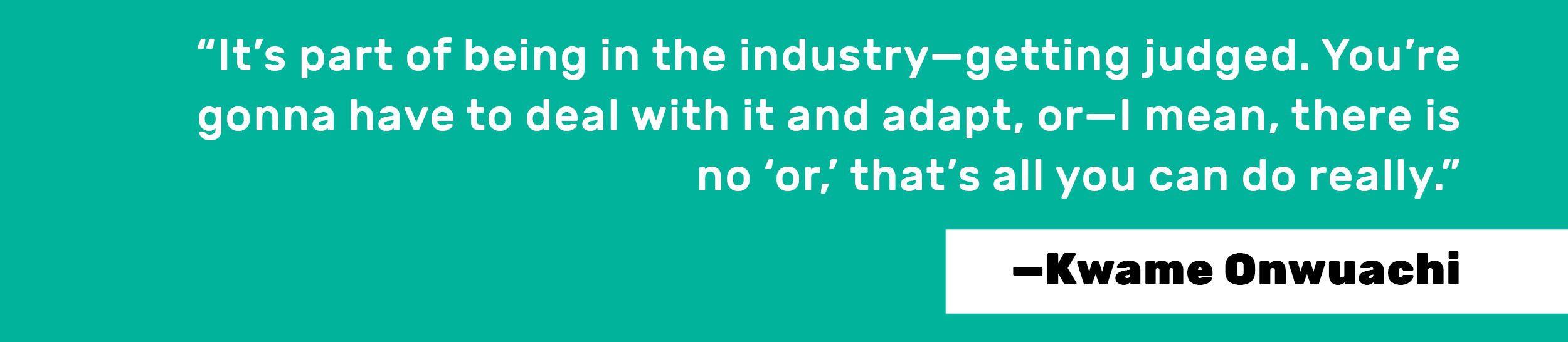 “It hurts — you put a lot of energy into something, and then someone can come along and say that they just don’t think it’s good or needs work,” Onwuachi said when we spoke recently. “But it’s part of the game. It’s part of being in the industry — getting judged.