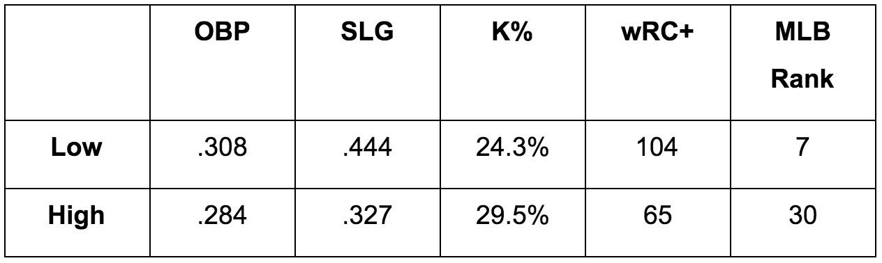 Leaguewide, offenses didn’t fare much worse as the leverage increased, nor did their strikeout rates edge higher. Yet in low-leverage situations, the Rays hit as well as the Cubs and Orioles, while in high-leverage situations, they fell to Alexei Ramírez’s equivalent.