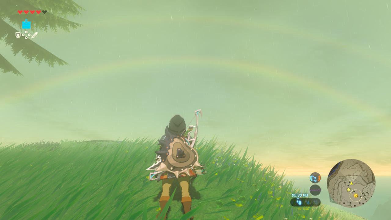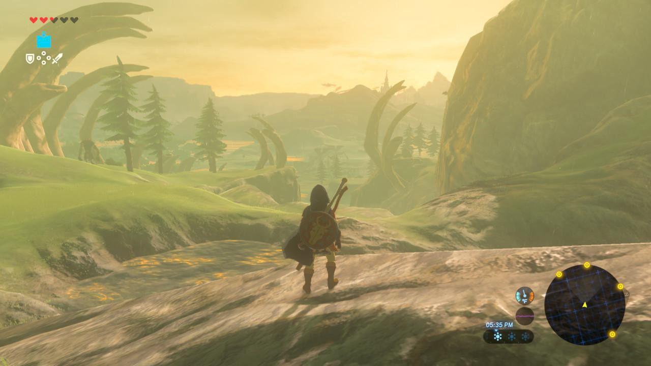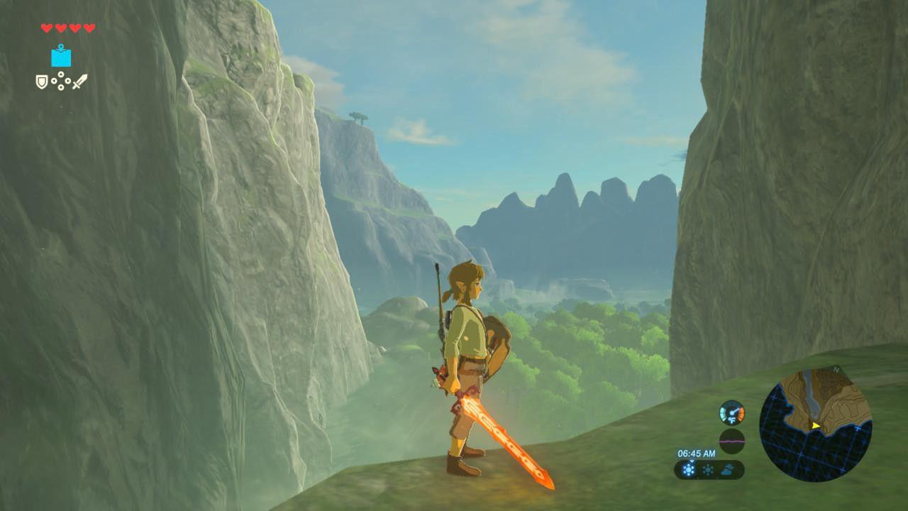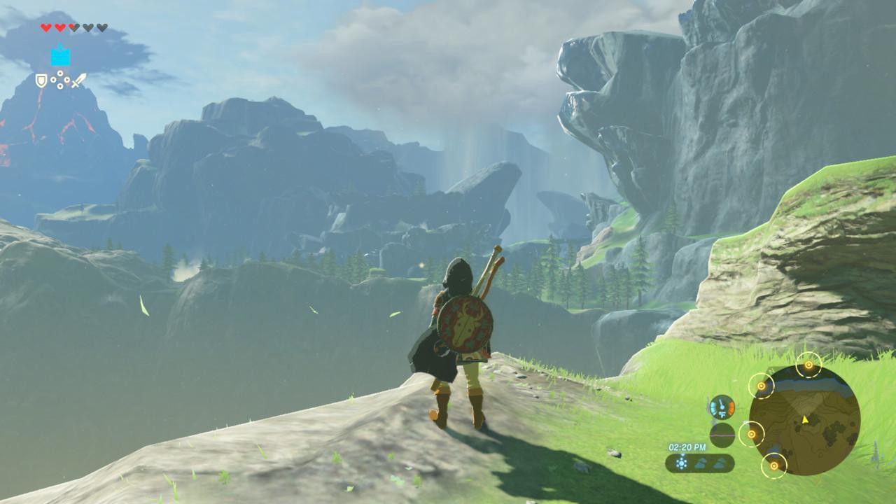 Although the 2013 portable title, A Link Between Worlds, grasped the reins a little less tightly, every experiment in Breath of the Wild seems more striking in light of its console precursors’ rigidity. Hence my surprise at seeing Link’s new chest-opening tactic, or, in some cutscenes, hearing actual voice work complementing Nintendo’s traditional presentation of text and short, comedic exclamations. (Some traditions are too sacred to disrupt: Link remains a silent, if facially expressive, protagonist.) But Breath of the Wild doesn’t just look and sound different; it plays dramatically different, by almost any series’ standards. This is a game without gates.