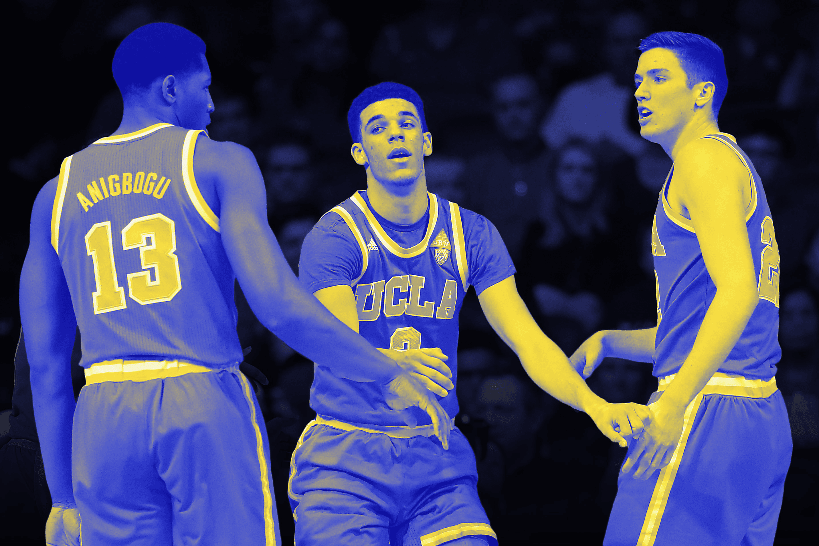 The only players in their rotation who don’t shoot 3s are their centers, Thomas Welsh, Ike Anigbogu, and Gyorgy Goloman. Welsh is one of the best midrange shooters in the country, Anigbogu is an elite rim runner who stretches a defense vertically, and Goloman will likely get only spot minutes in the tourney. UCLA plays four-out or five-out basketball the entire game. All that spacing has helped Ball lead the country in assists per game (7.7), with a 3-to-1 assist-to-turnover ratio that is good for 15th in the nation. No one has been able to shut down UCLA this season. Even in their four losses — a home game and a Pac-12 tournament game against Arizona, as well as road dates against USC and Oregon — the Bruins averaged 80.8 points a game on 46.9 percent shooting.