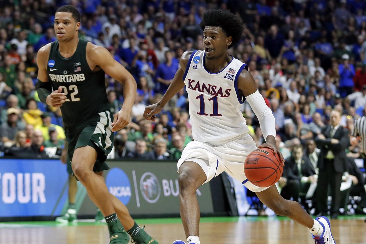 The duel between the two didn’t disappoint, as they went point-for-point with each other on Sunday. Jackson finished the game with 23 points, three rebounds, two steals, and two blocks on 9-of-16 shooting for the Jayhawks, while Bridges chipped in 22 points, eight rebounds, two assists, and one steal on 7-of-15 shooting for the Spartans. Kansas won the game, but Bridges played his more highly touted counterpart to a draw, at least on the stat sheet. A deeper dive into the film reveals some interesting developments for both players.