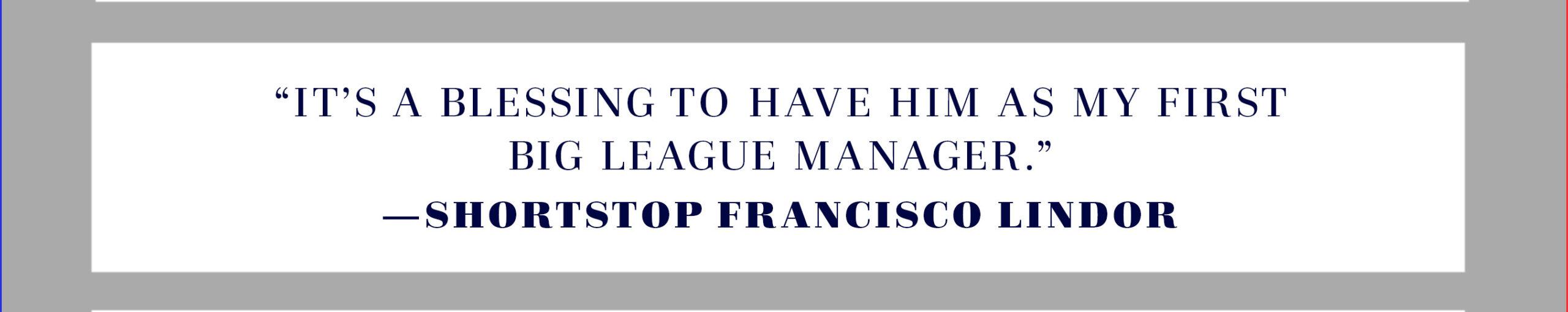 Francona’s rough departure from Boston wouldn’t have much in the way of negative lasting effects, though; the baseball world has gotten pretty good at recognizing undervalued assets. When Antonetti says that Francona’s "track record in Boston and his reputation certainly preceded him" when he was hired by Cleveland, he means it as a positive. Lindor, the 23-year-old shortstop who was an All-Star last year in his second MLB season and is considered one of the league’s most exciting young stars, did have a couple of preconceived notions about Francona before he began playing for him. "He seemed like he was just an easygoing coach," Lindor says, "that was always chewing gum and making the right decisions." His hunch was pretty on-target. "He’s very easygoing, and very special," Lindor says, "in the sense of, he lets us be who we wanna be, and it’s cool. It’s a blessing to have him as my first big league manager." Allen echoes this. "He gives you the freedom to be yourself," the pitcher says. "This game’s hard enough, and if you’re trying to be somebody you’re not, it makes it even harder."