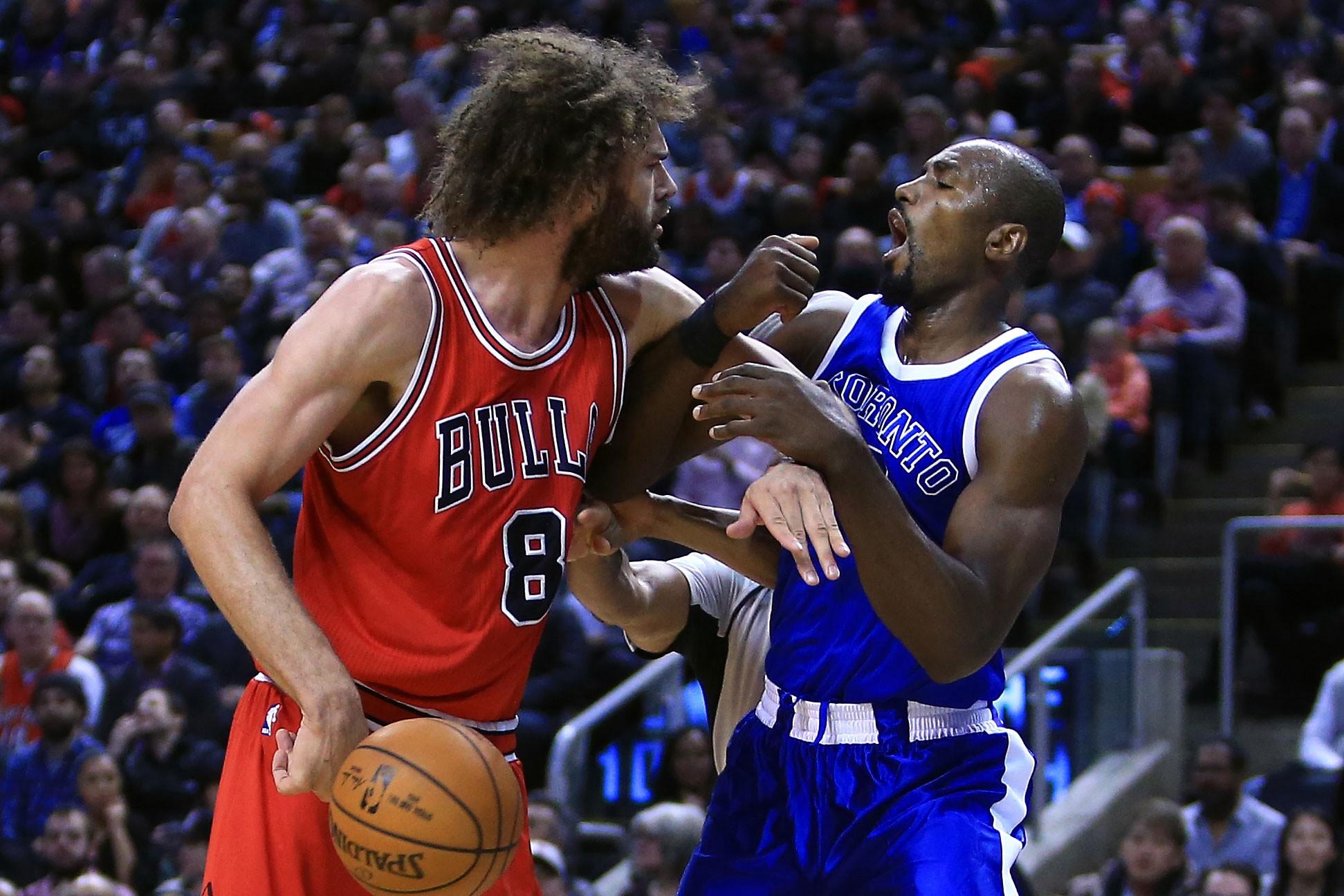 It popped off with just under four minutes to play in the third, with the Bulls up 16. Lopez and Ibaka were jostling for rebounding position like two spring break watercrafts on Lake Havasu. Something — perhaps Ibaka jabbing him with an elbow — set Lopez off. He turned, swiped at Serge, and well, let me first say: I don’t condone violence; violence is bad. Now peep this: