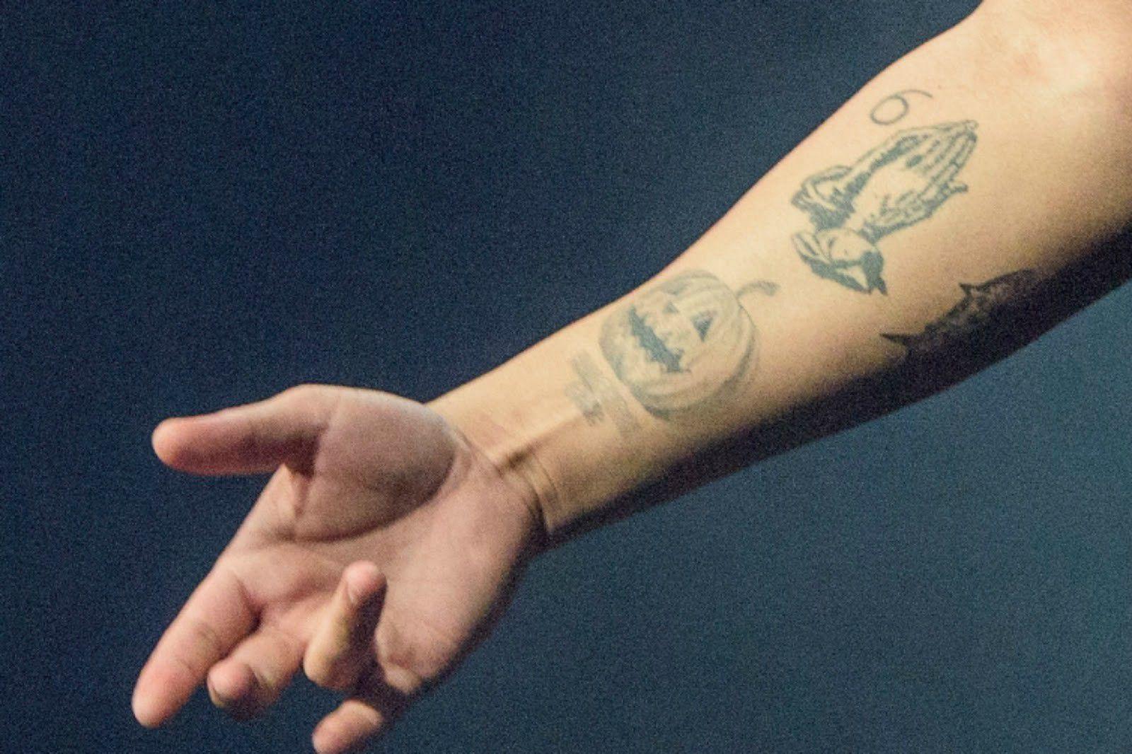 Giorgis: This charming ode to none other than Ms. Robyn Rihanna Fenty (she too has a camo shark tattoo) sits gently on the Boy’s right forearm. Sweet and almost imperceptible at first, it’s a nod to the stuffed toy he once got her (and the matching tattoo she has on her ankle). Even if you don’t love AubRih (which I’ll allow, because Champagne Papi really can’t catch a wine), the tat tops the list if only because someone else approved of it for once.