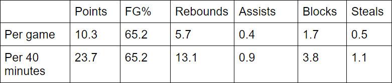 Collins is averaging 17.3 minutes per game this season, by far the fewest of the top freshmen in this year’s draft class. As a result, his per-game statistics don’t measure up to those of his peers. It’s only when you average his play out over 40 minutes that his productivity shines through.