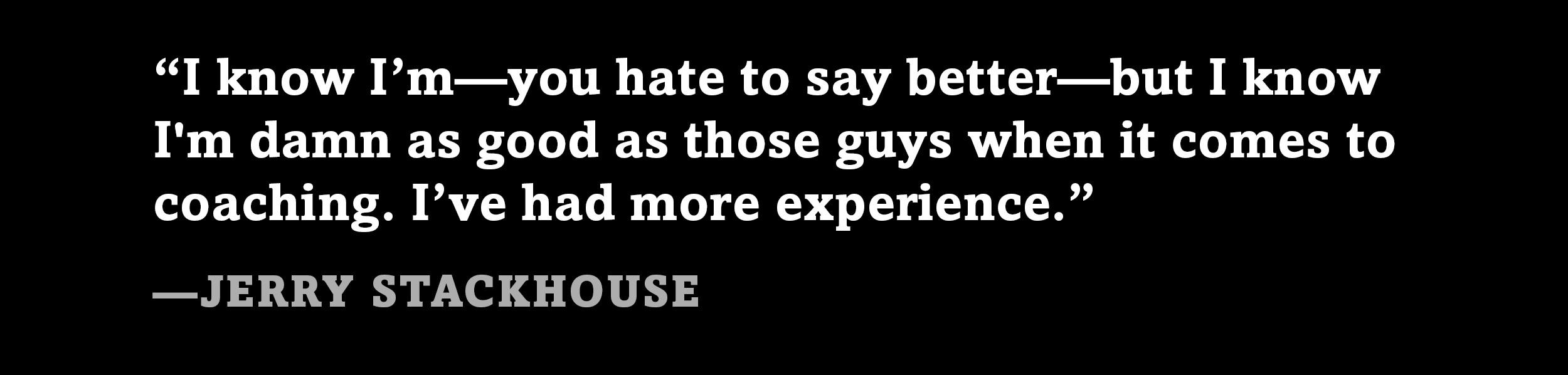 "Seeing [Fisher and Kidd] get those head-coaching jobs," Stackhouse says, "I was like, I know I’m — you hate to say better — but I know I’m damn as good as those guys when it comes to coaching. I’ve had more experience. …
