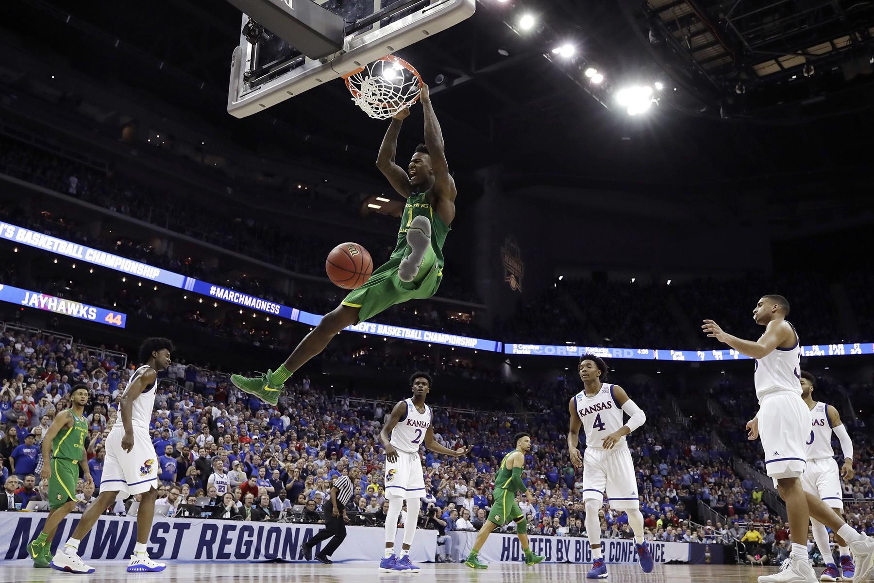 Oregon has been known for high-flying offense under seventh-year head coach Dana Altman, but it was their defense that was the story against Kansas. The Jayhawks had been averaging 96 points on 54.7 percent shooting in the tournament, and the Ducks held them to 60 points on 35 percent shooting. Bell was at the center of everything — manning the middle in their matchup zone, which flustered Bill Self’s team all night, and switching screens and staying in front of Kansas guards Frank Mason III and Devonte’ Graham when they were playing man. He even guarded star freshman Josh Jackson for stretches of the game. It was as dominant a defensive performance as you will ever see in the Big Dance.