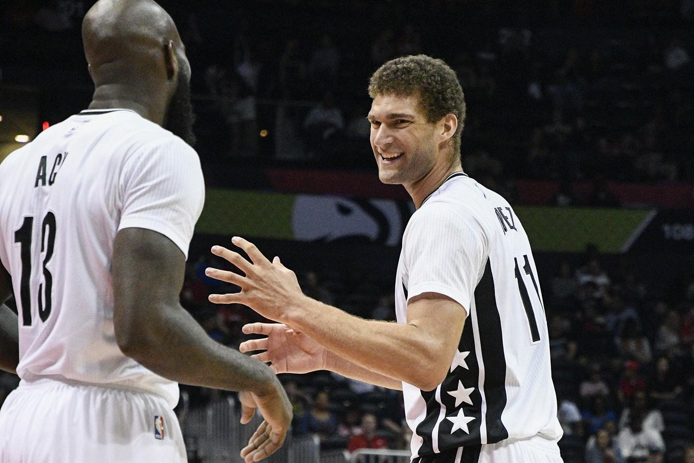 Though the Nets — currently 11 games worse in the loss column than the 76ers and five games worse than the Suns and the Lakers — have no reason to tank, they’re perfectly equipped to do so. Their team — a roster with no superstars, stars, or even budding stars — is a verbatim reading of Sam Hinkie’s golden “When to Tank” plate. They’re so far from relevance that last September, their preseason photo shoot turned into a game of How Many Nets Can You Name for NBA heads. Come their first matchup, it looked like Brooklyn was fielding Brook Lopez and four guys who might as well have been the “generic athlete” jersey models used for NCAA promotions.